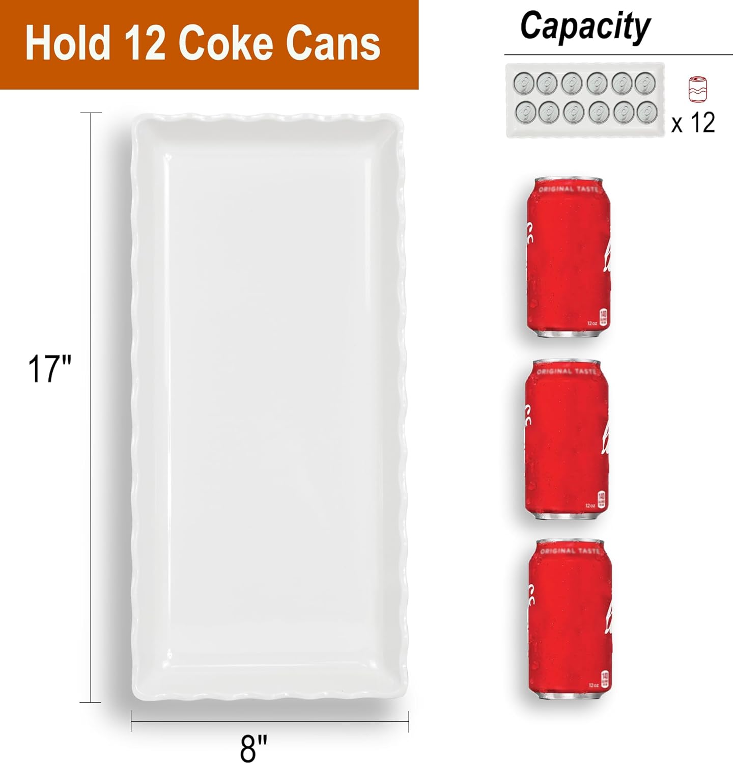 KAQAHIDO 17" x 8" x 1.5" White Serving Tray Set, Wave Edge Melamine Platters for Cookie, Appetizer, Charcuterie, Snack, Dessert, Party Food Display, Stackable, Set of 2