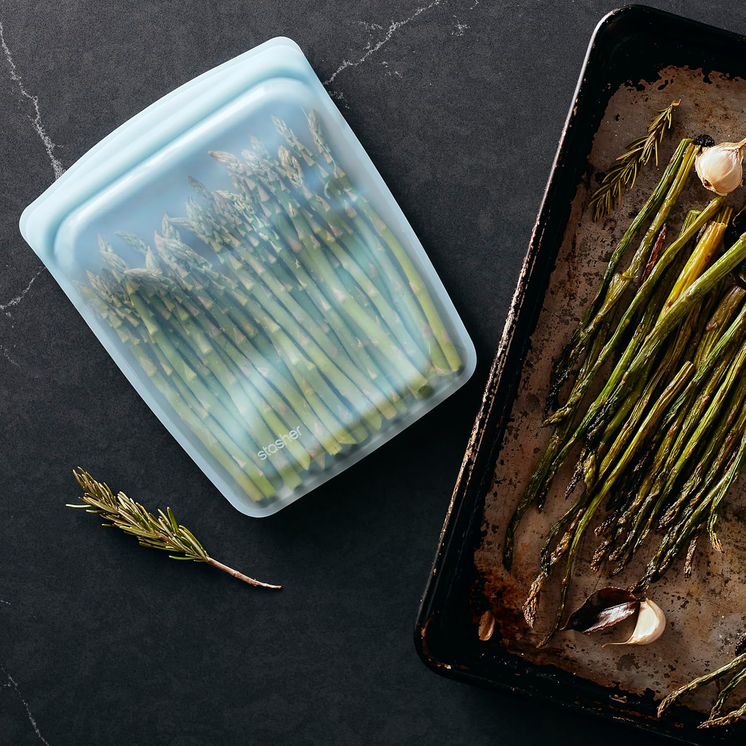 - REUSABLE, REWASHABLE CONTAINERS: Stasher silicone reusable storage bags make it easy to ditch single-use plastic and meet endless household needs. Safe for the dishwasher, microwave, oven (up to 425°F), and more.