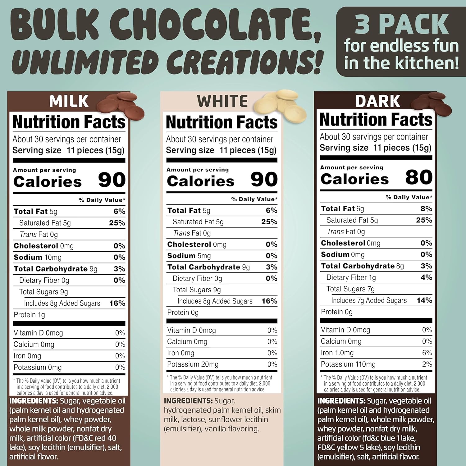 Chocolate Works Melting Chocolate Parent (10 oz (Pack of 3), Variety Pack: Milk, Dark, White Chocolate)