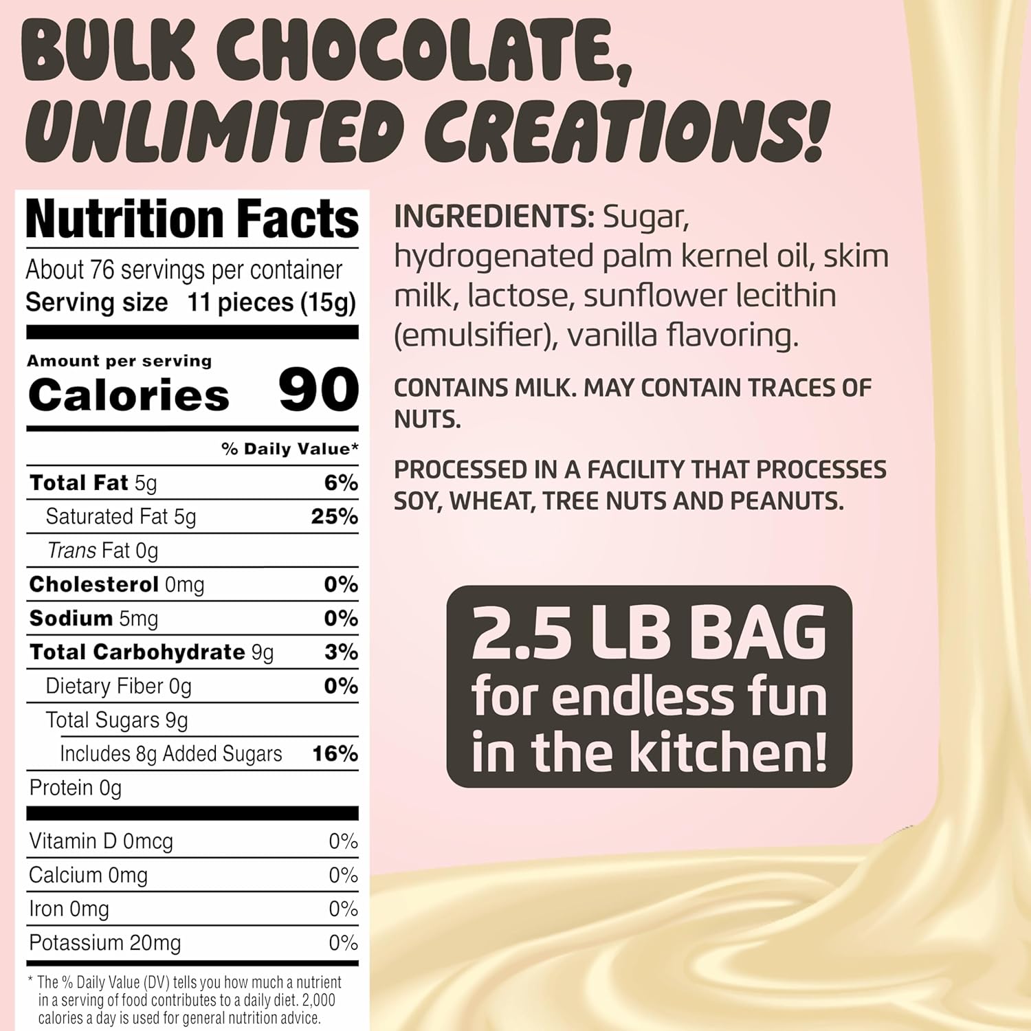 - BULK CHOCOLATE - Want to whip up something sweet for friends and family? Have a special event coming up? Weโve got you covered with a bulk supply of chocolate melts to satisfy a crowd. Let the delicious culinary creations begin!