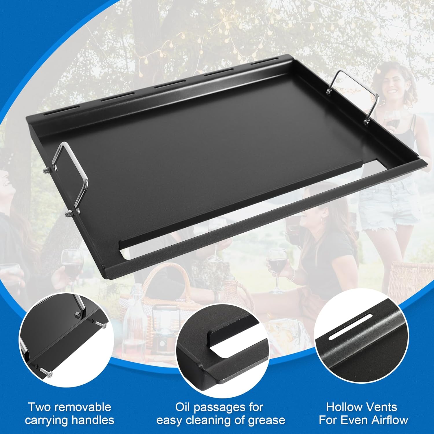 - DURABLE CONSTRUCTION: Full-size griddle plate made from high-quality non-stick coated carbon steel material that prevents warping, and a rust- and heat-resistant design, provides exceptional durability and heats evenly. It guarantees perfect cooking results every time and is easy to clean