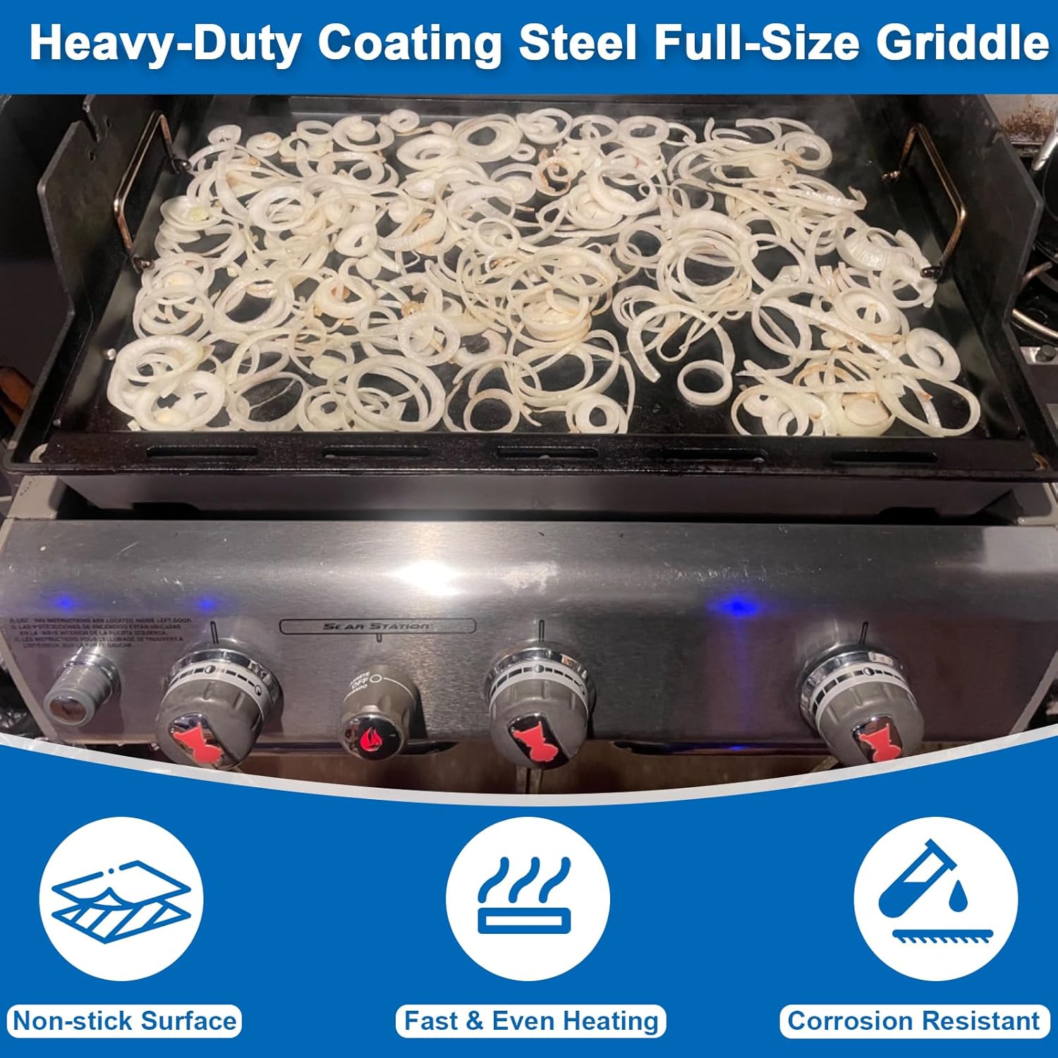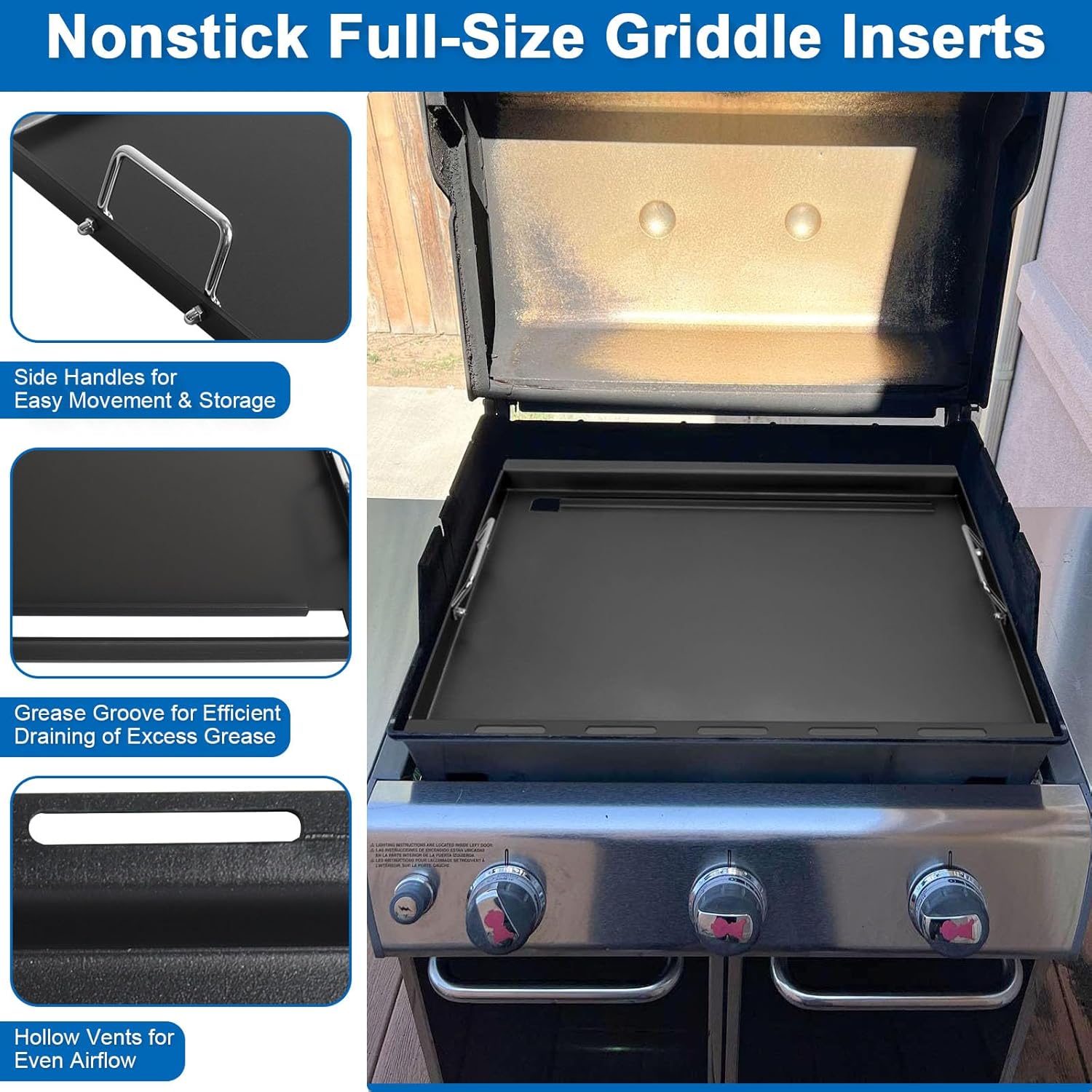 Full-Size Griddle Inserts for Weber Genesis 300 Gas Grills Flat Top Plate with Handles for Genesis E-310 S-310 E-320 S-320 E-330 S-330 EP-310 EP-320 EP-330 CEP-310 Replace for Weber 7524