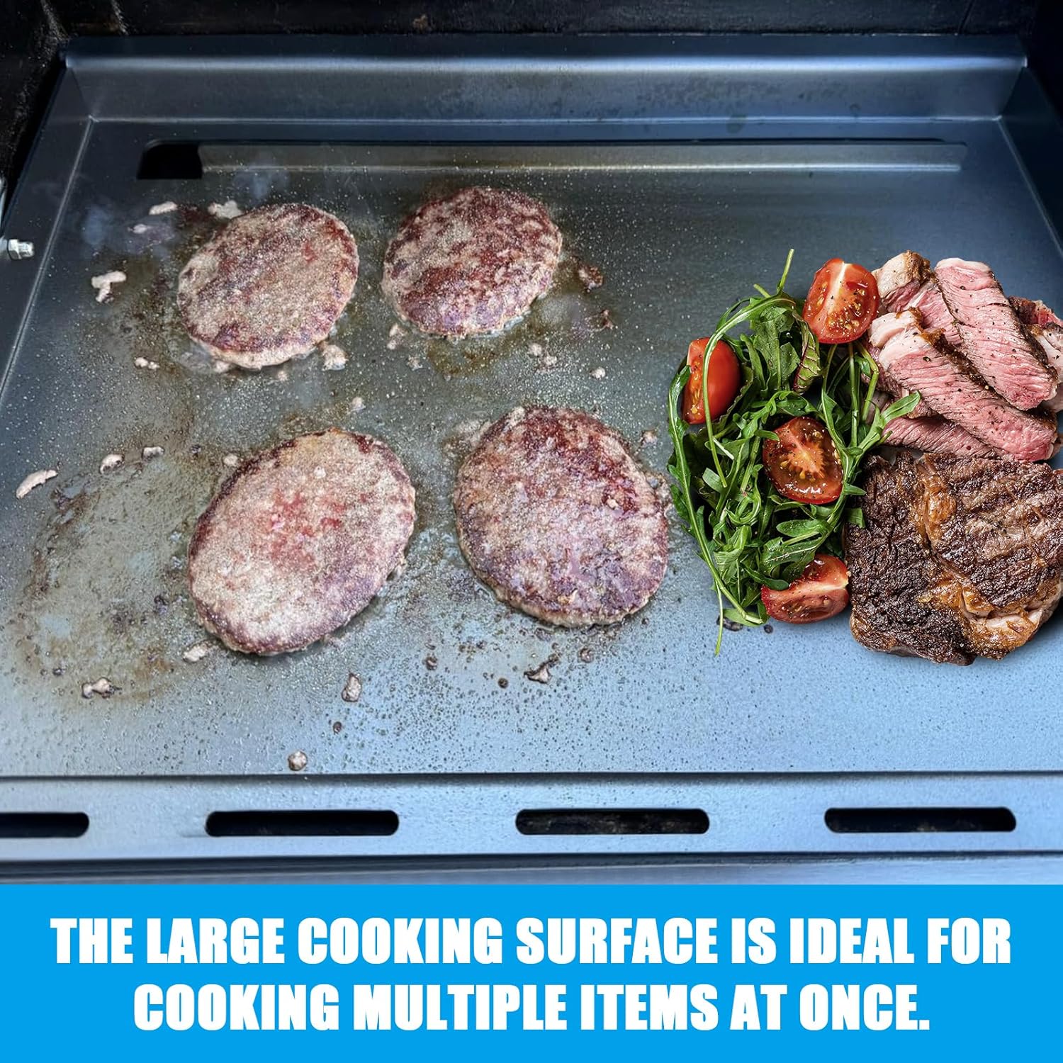 - SPACIOUS COOKING AREA: The Full-Size Cooking Griddle features a spacious cooking area that is perfect for cooking a variety of foods at the same time, and can be used to cook a wide range of foods such as pancakes, eggs, sautรฉed vegetables, and meats, ensuring that you cook efficiently at family gatherings or parties