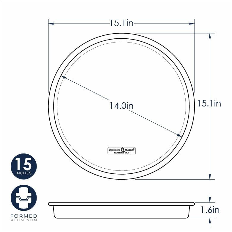 - Pan has a 15.1 inch diameter, with a cooking surface diameter of 14 x 1.6 inches.