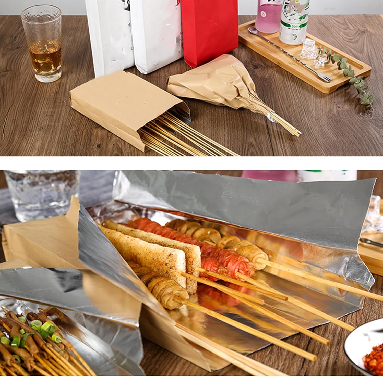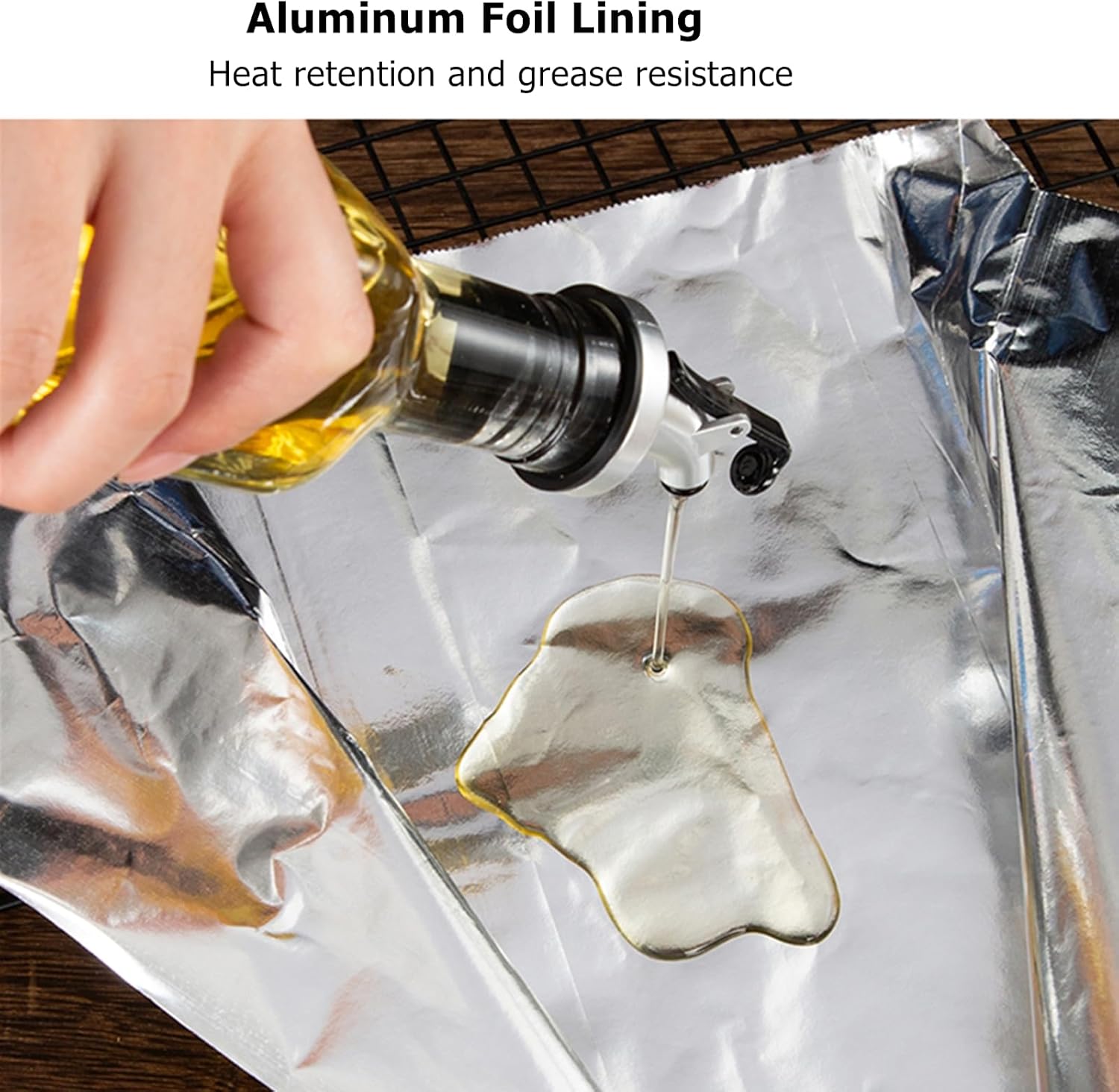 - Comes with 150 pack insulated foil sandwich bag. Each aluminum foil bag measures approximately 6.3βL x 1.5βW x 10βH, can hold up to 4 pounds. A sufficient quantity and perfect size can accommodate hot and cold foods for transport
