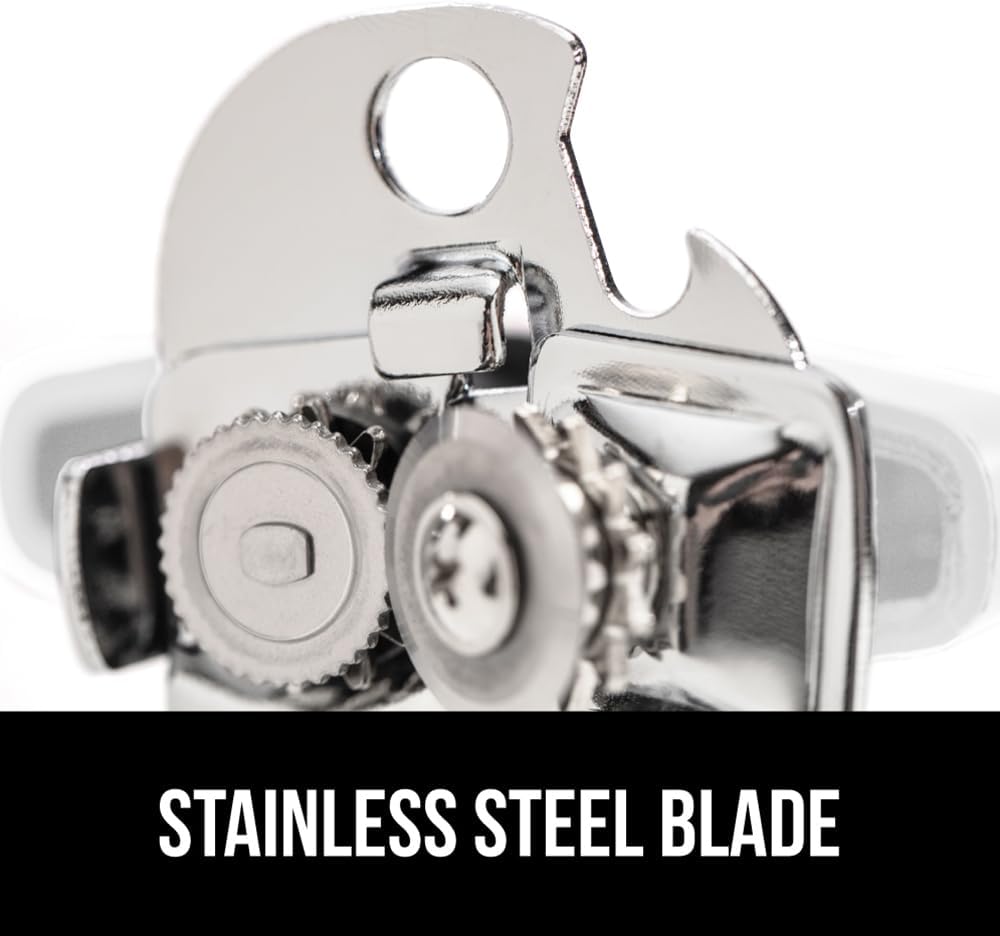 - STRONG AND POWERFUL STAINLESS STEEL BLADE: finally, a more powerful can opener; sharp and durable 100 percent stainless steel cutting wheel will easily puncture all types of cans; rust resistant for long lasting use