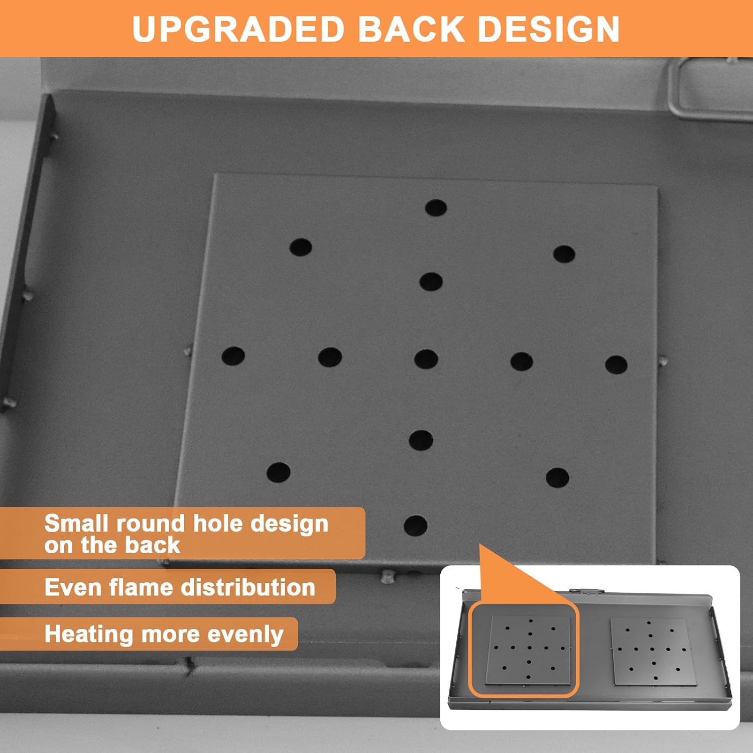 - Premium Quality: This flat top griddle crafted from durable material, special sturdy construction and evenly heated. Before using the griddle plate, you can season it first. Convenient for your use. Small round hole design on the back, even flame distribution, heating more evenly. Note: When seasoned with cooking oil before use, fry griddle creates a natural non-stick surface that makes cleaning a breeze and extends its life.