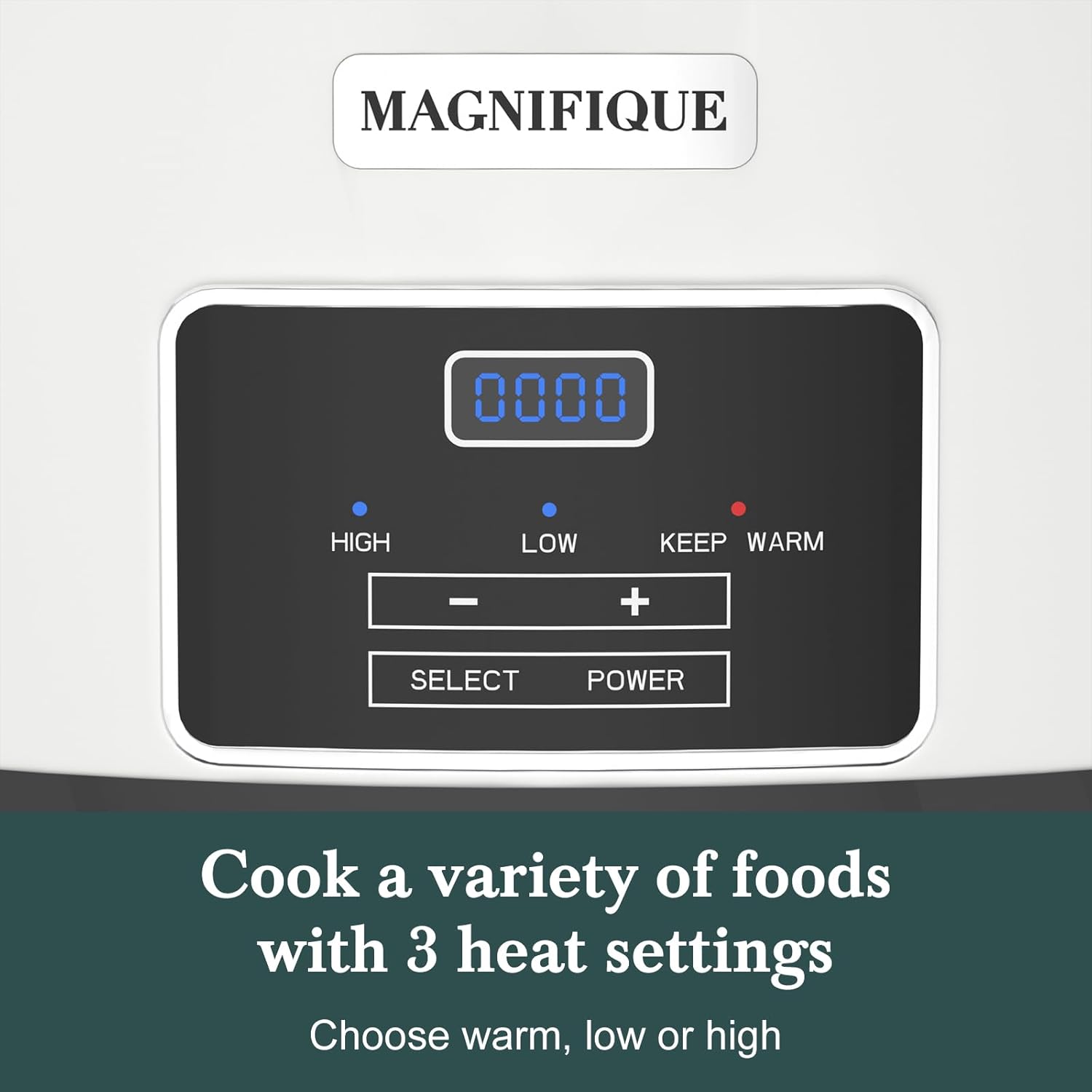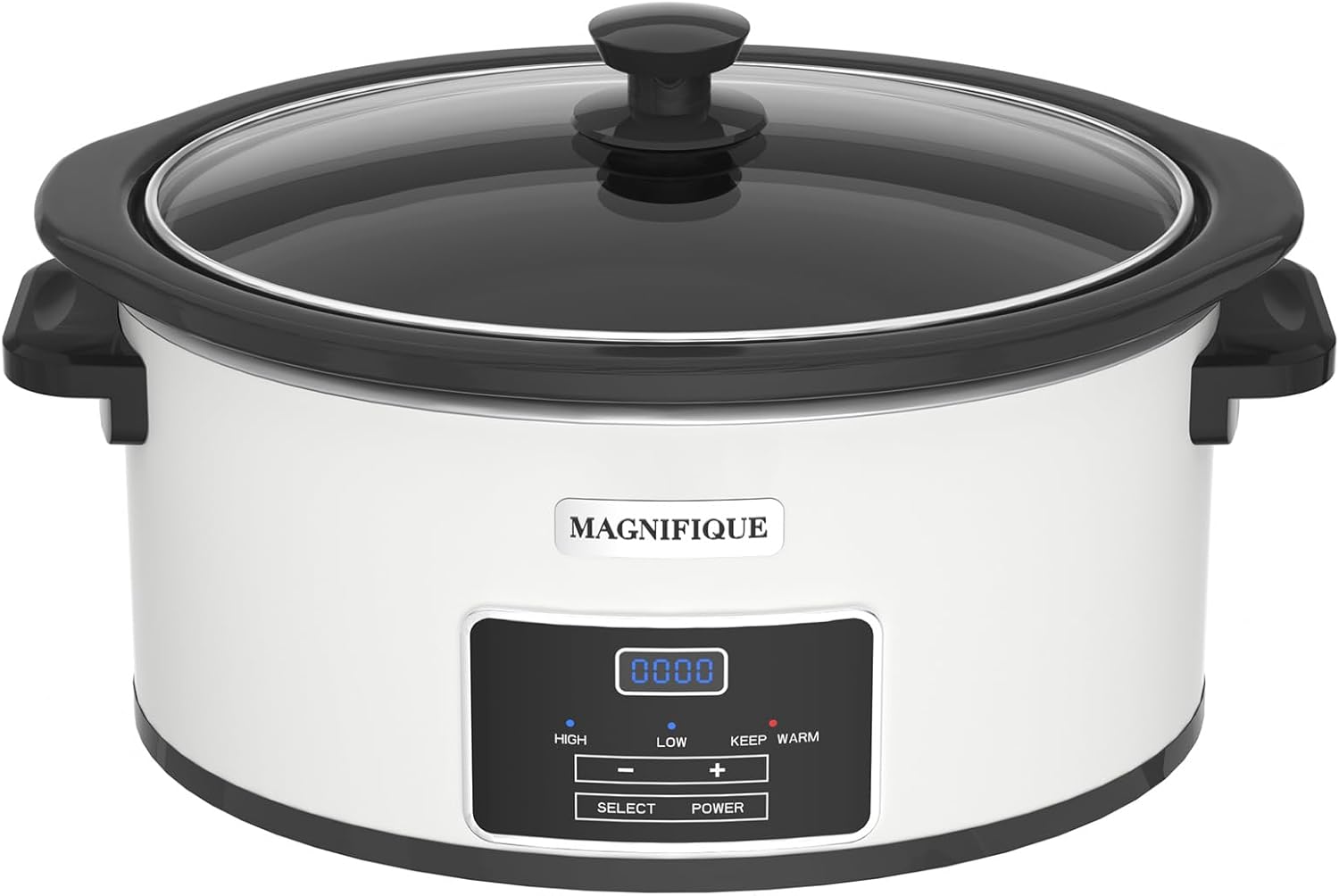 7-Quart Programmable Slow Cooker with Timer Keep Warm - Small Kitchen Appliance for Family Dinners - Serves 6+ People - Heat Settings: Keep Warm(White, Black Liner)