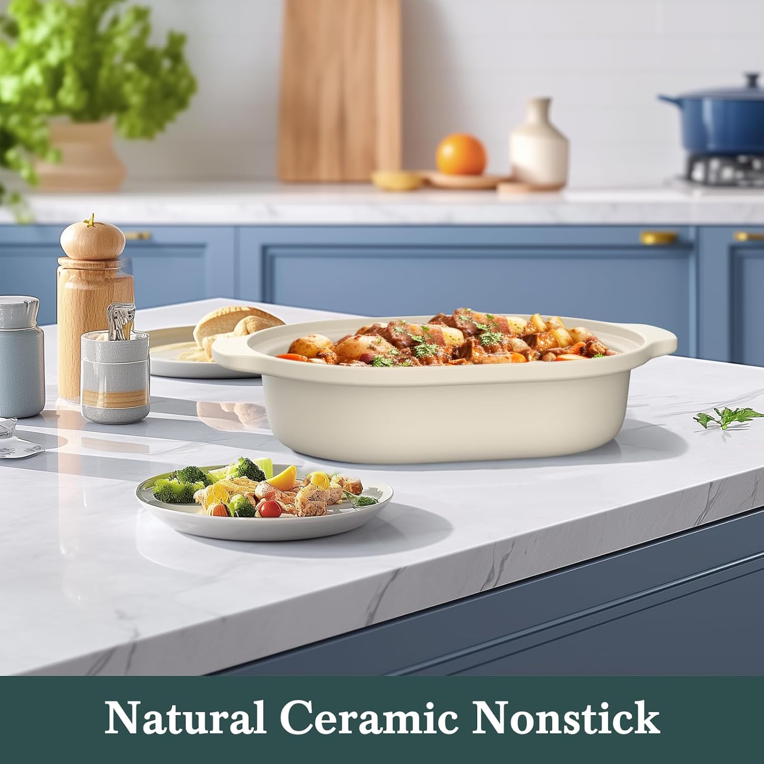 - Versatile cooking pot:Heat-resistant porcelain liner is microwave or a oven safe up to 450°F. In addition, ceramic nonstick coating, free from PFAS, PFOA, PTFE, lead, and cadmium, ensures a safe and easy cooking experience.
