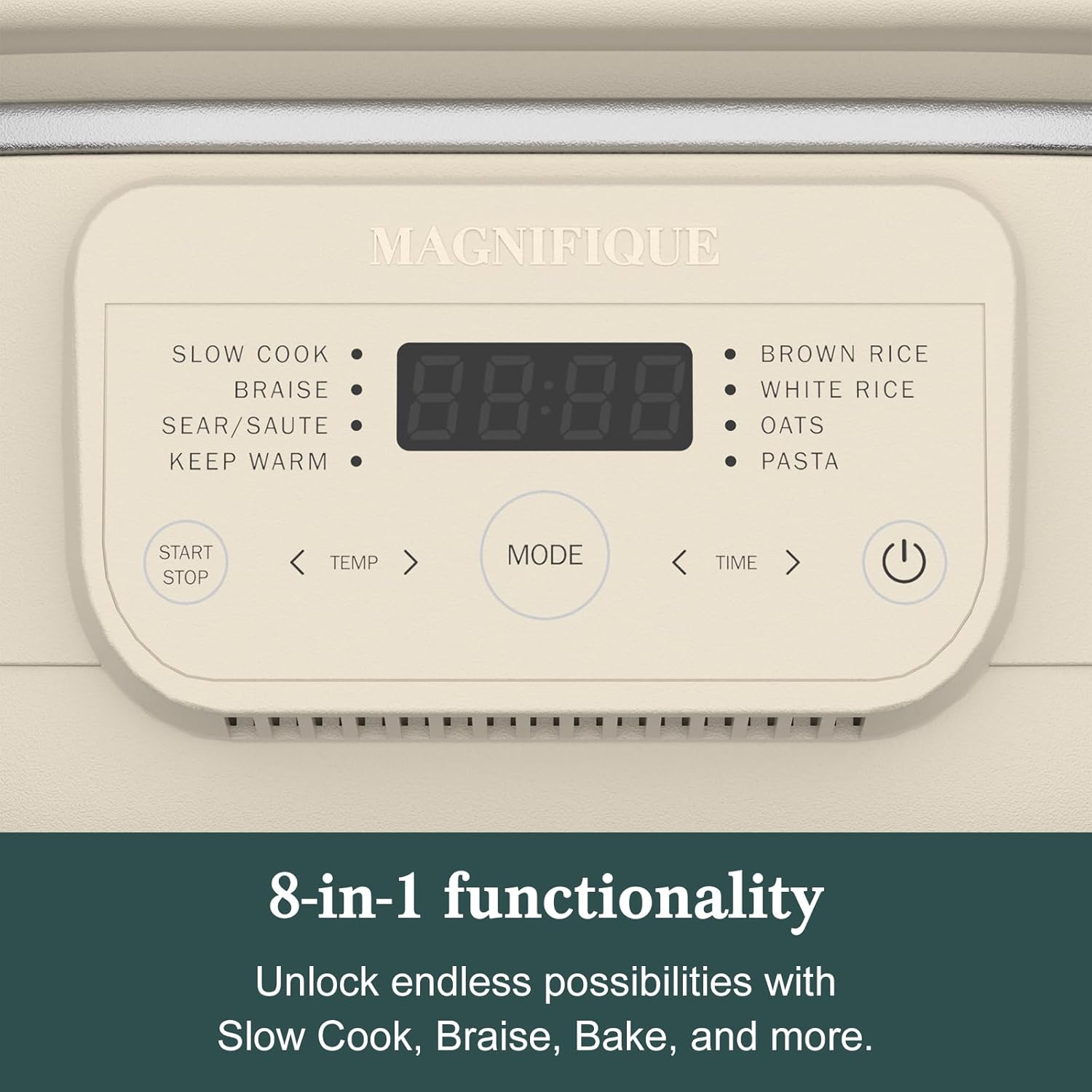 MAGNIFIQUE 4 Quart Claypot Multi-Cooker, with 8-in-1 Casserole Programmable Slow Cooker, Dutch Oven, Pasta, Nonstick Oven Safe Pot to 450°F, Oatmeal