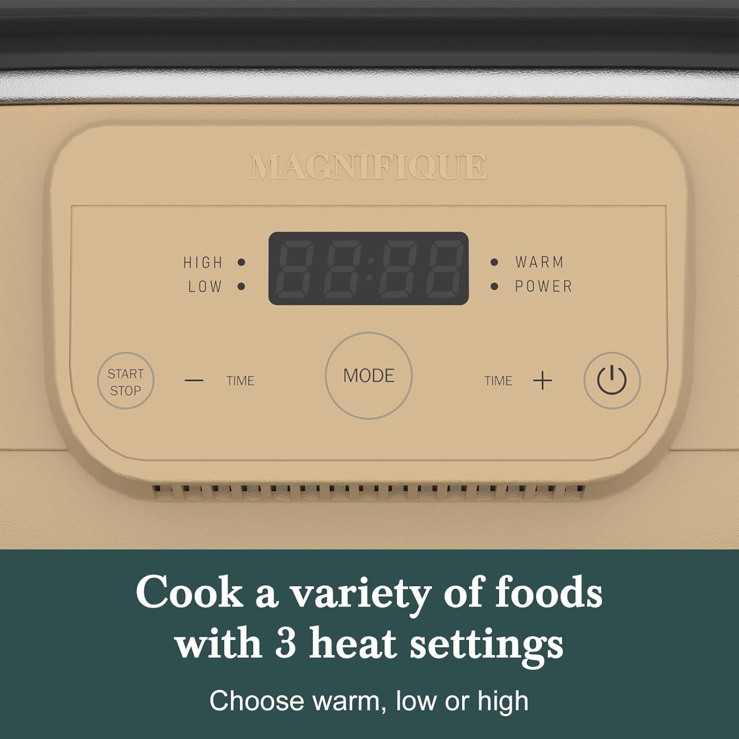 MAGNIFIQUE 6 Quart Programmable Slow Cooker Removable Healthy Nonstick Pot - Small Kitchen Appliance for Family Dinners - Serves 6+ People - Heat Settings: Keep Warm Brown Sugar