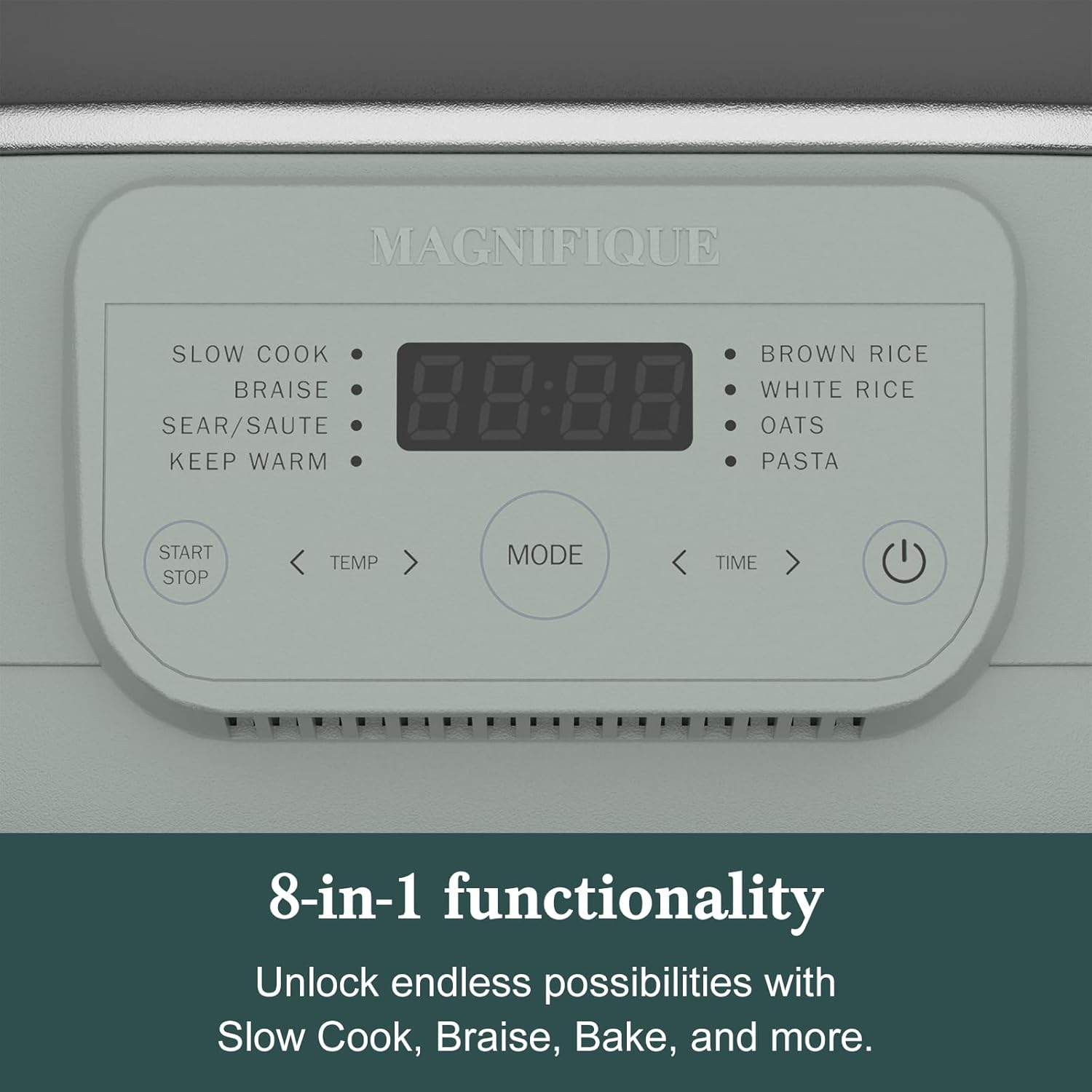 MAGNIFIQUE 6 Quart Multi-Cooker, with 8-in-1 Casserole Programmable Slow Cooker, Dutch Oven, Pasta, Nonstick, Oven Safe Pot to 500°F Olive Olive