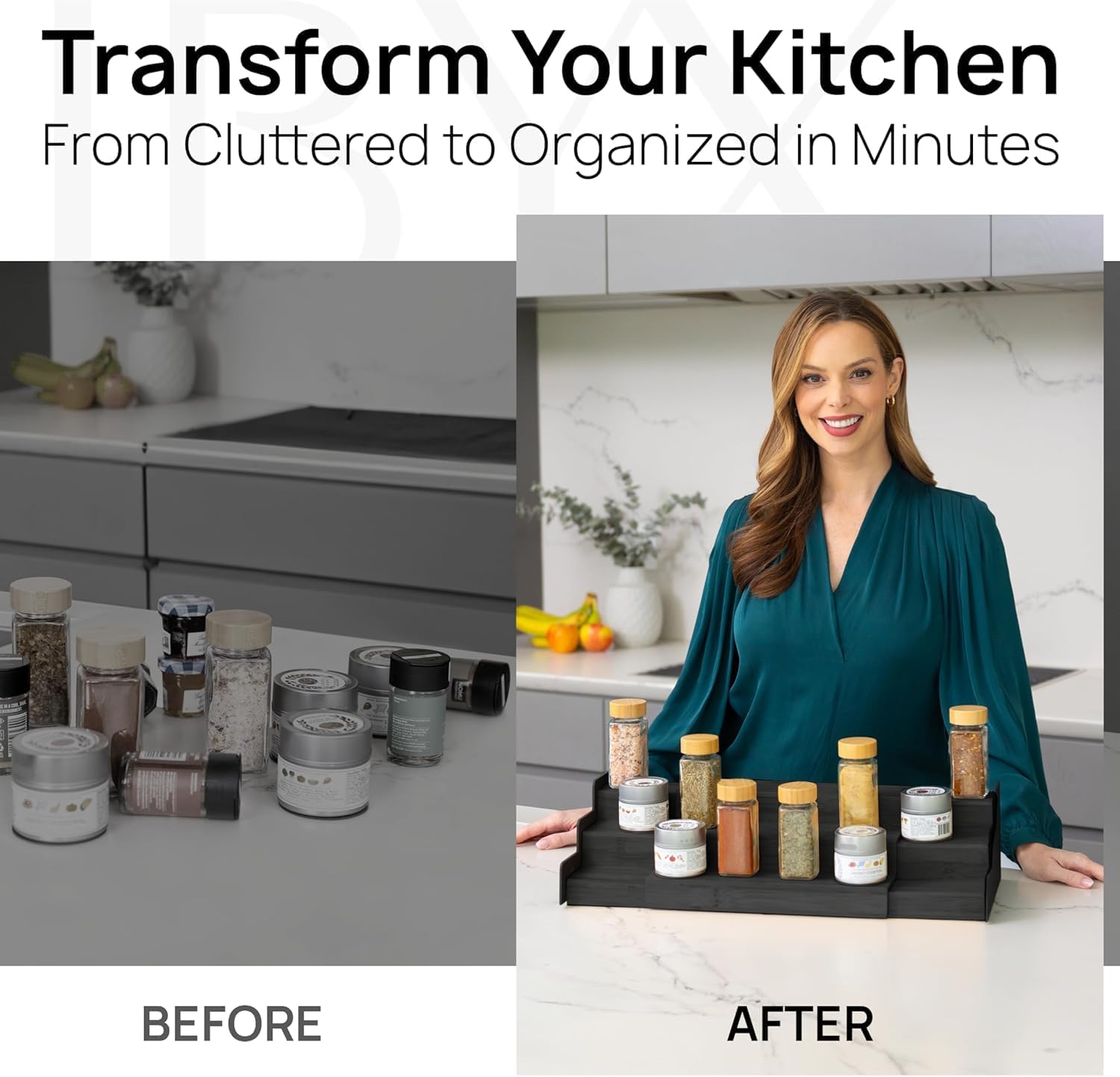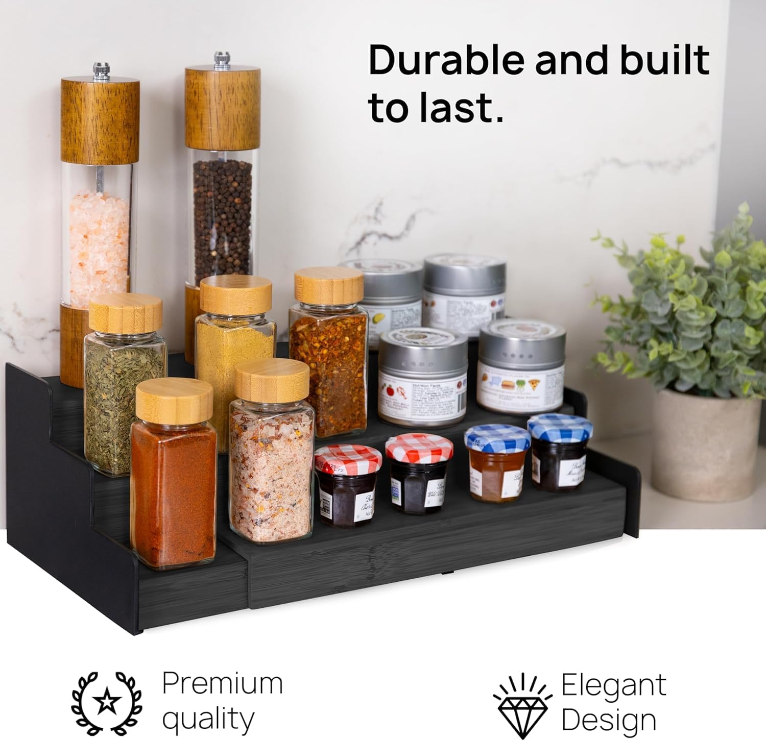 - ππππππ & π πππππππππ - This 3-Tiered Spice Rack Organizer helps you maximize your cabinet & countertop storage. Two raised sides effectively prevent jars and containers from tipping over. Keep your spices organized & easily accessible without taking up too much space. A must-have for any kitchen!