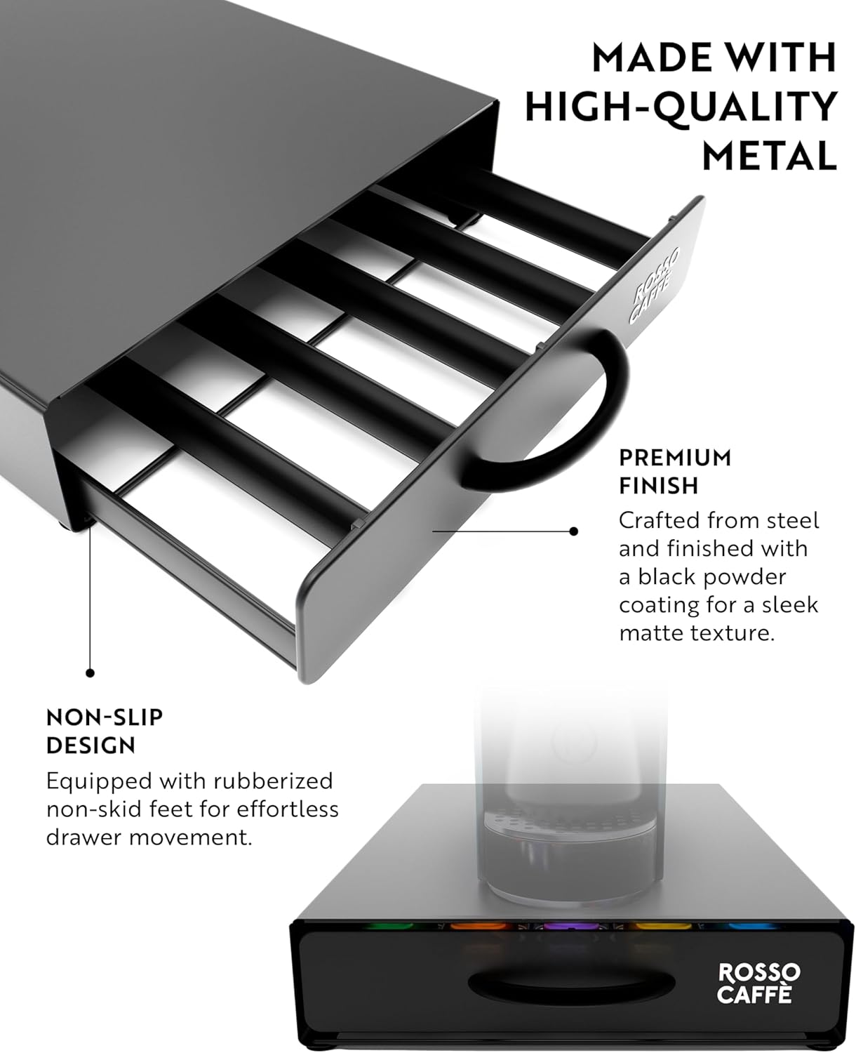 ROSSO CAFFÈ - Coffee Capsule Drawer Organizer, Holds Up to 45 capsules, Space-Saving Storage, Sleek Countertop Design