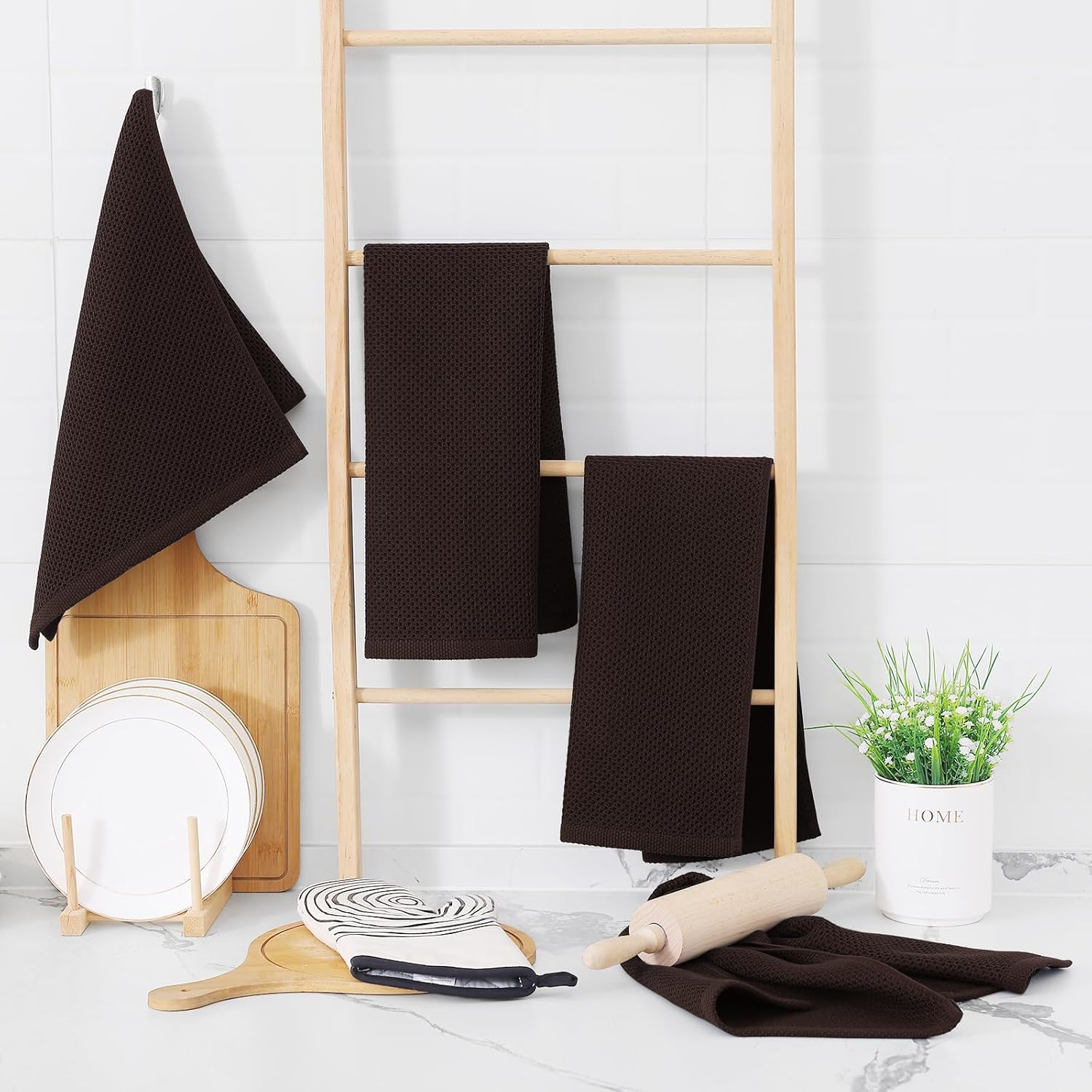Homaxy 100% Cotton Waffle Weave Kitchen Dish Towels, Ultra Soft Absorbent Quick Drying Cleaning Towel, 13 x 28 Inches, 8-Pack, Dark Brown
