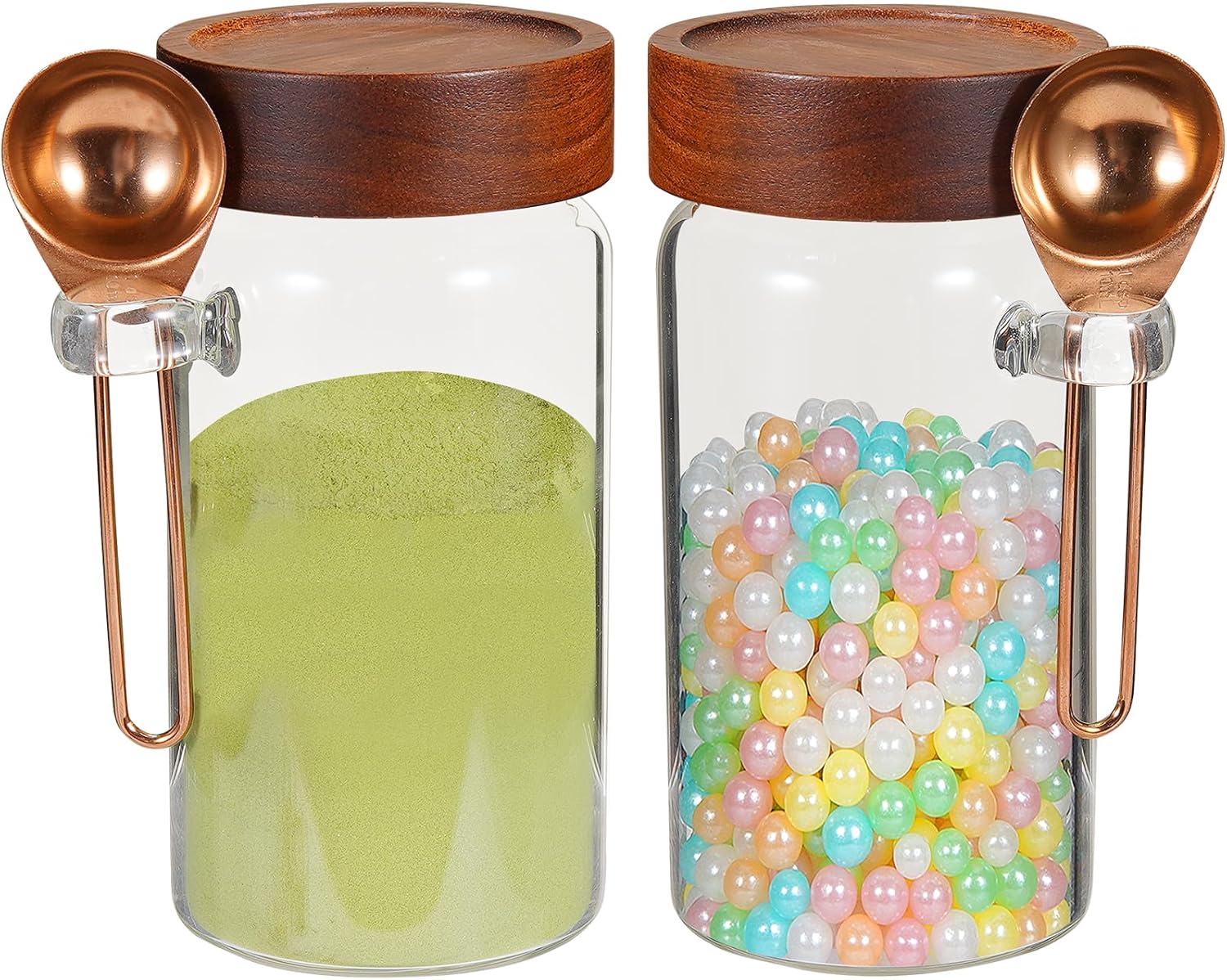 - 【WIDE APPLICATIONS】 Small glass canisters for pantry organization are suitable for storing various dried ingredients to retain their freshness, with clear glass jars, you can easily see inside and quickly find the ingredients you need.Glass jars with wood lids perfect for storing dry food , such as,cookies,dried beans,pepper, jams, chutneys, rice, flour, tea, coffee, biscuits, candy,cheese,flour, sugar, seeds,Overnight Oatmeal ,etc. Keep your kitchen tidy and safe,saving space and convenient .