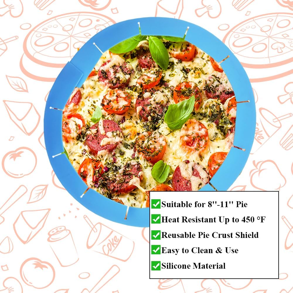- Cover the Edges of the Pie Crust: Place this silicone heat-resistant pie crust shield on the edges of the pie crust, pizza, and then put it into the oven, which will make the pie crust from burning when baking, and easily create a delicious pie or pizza