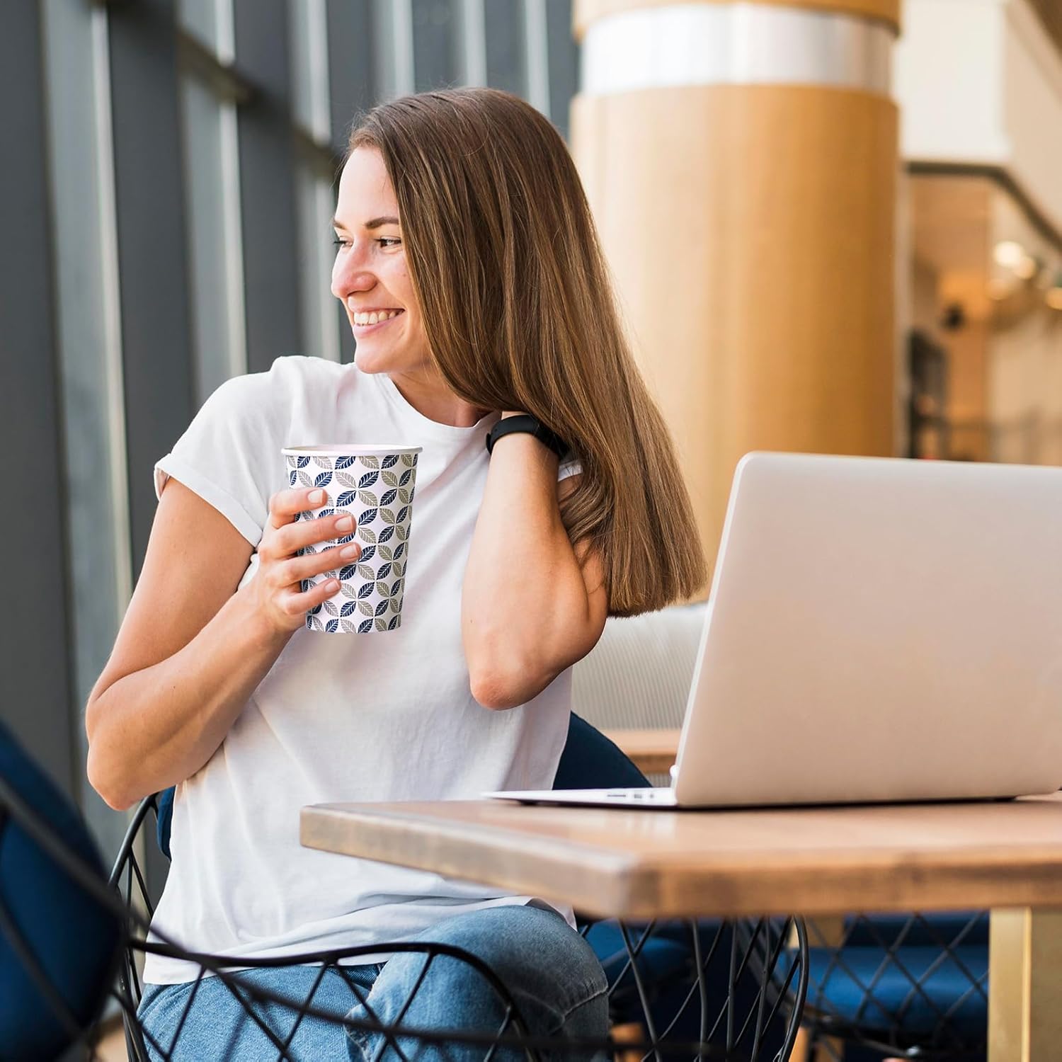 - 【Stylish Design】These coffee cups feature a unique blue and grey leaf print design that adds a touch of elegance to any setting. The fashion colors and simple patterns make them perfect for daily use and businesses