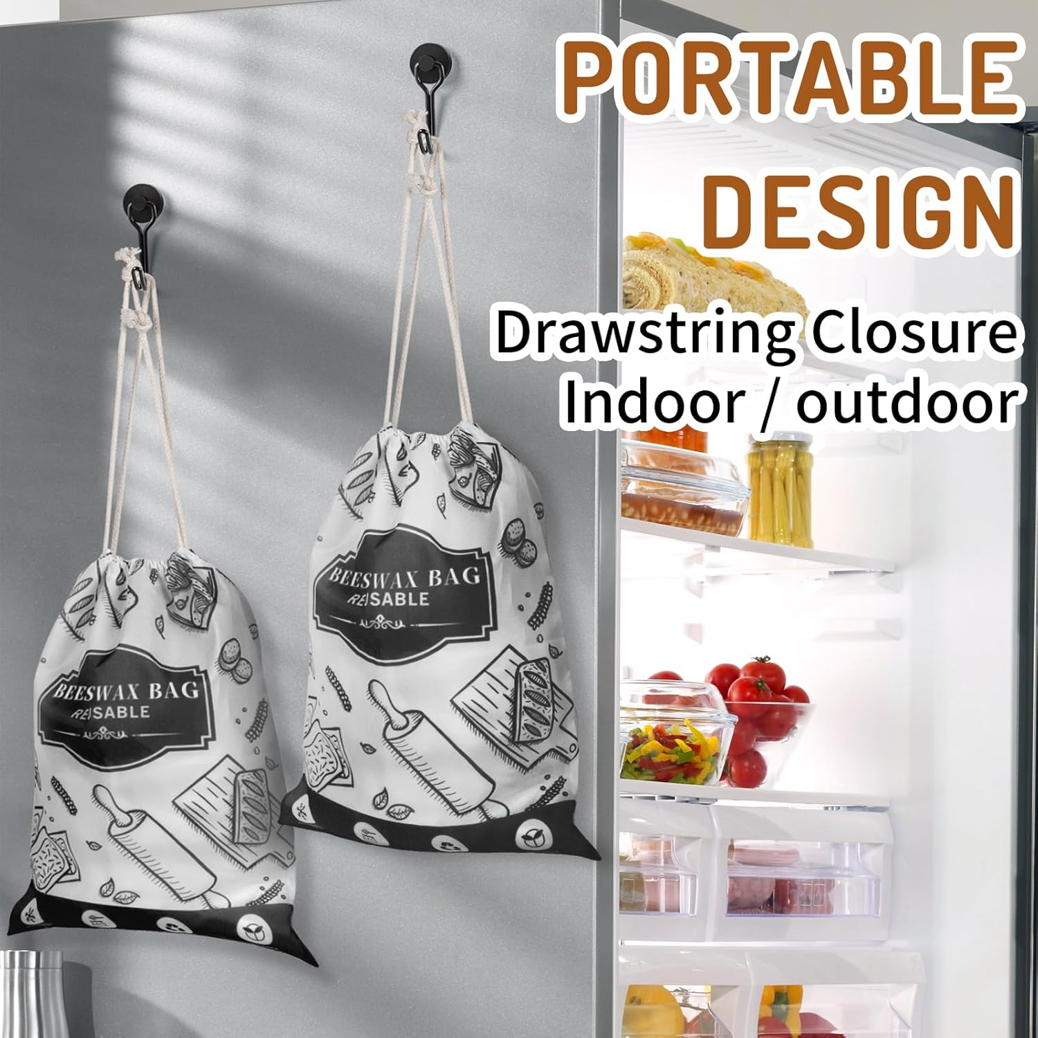 2-Pack Beeswax Bread Bags for Homemade Bread, Black Reusable Sourdough Storage Bags with Premium Beeswax Coating for Loafs Baguette Fresh Keeping,Great Homesteading Essentials and Baking Gifts.