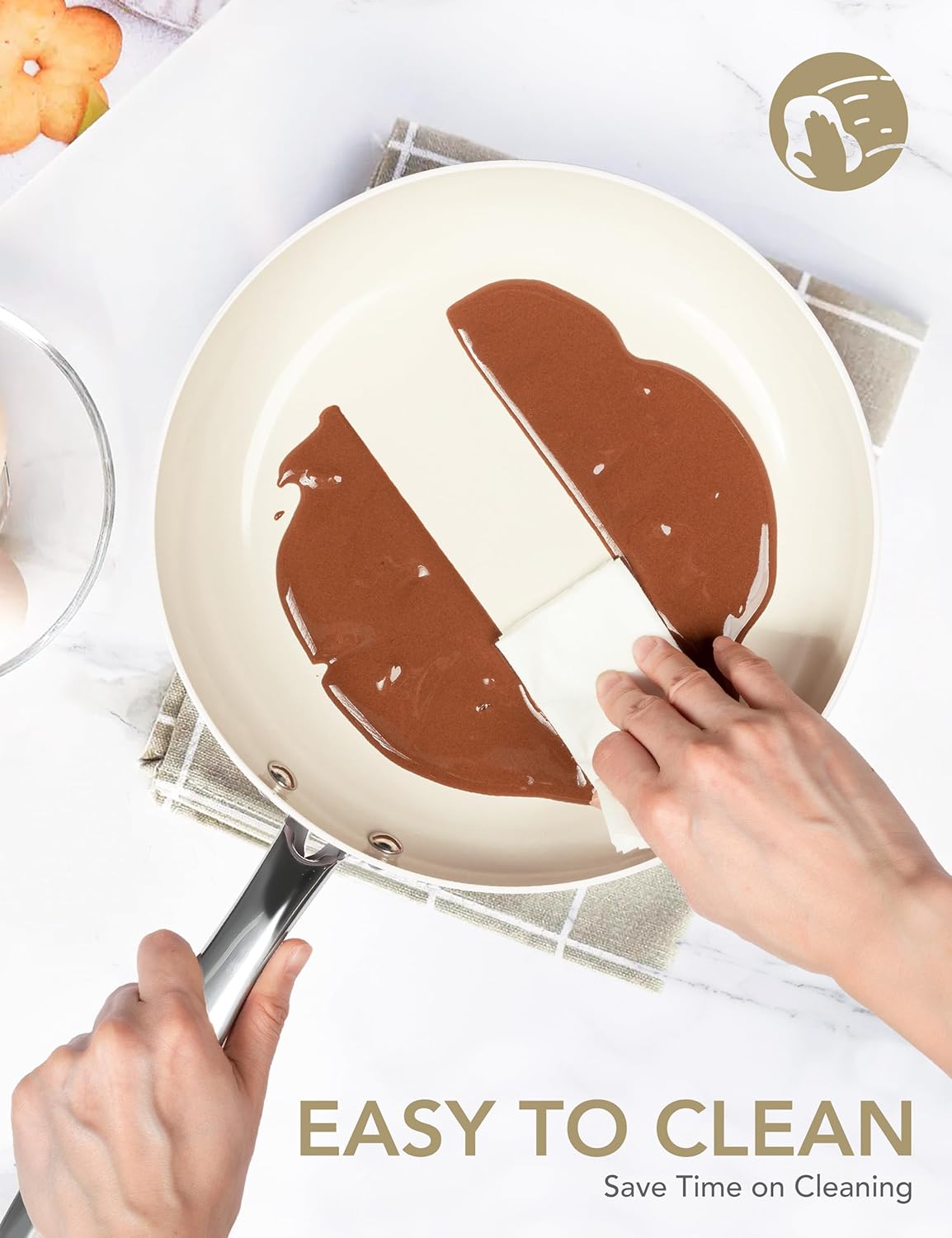 - Even Heat & Versatile Stovetop Use - Featuring an alloy base, this ceramic nonstick frying pan provides fast and even heat distribution for quicker cooking. Compatible with gas, electric, and induction stovetops, this versatile skillet with lid is ideal for any kitchen.