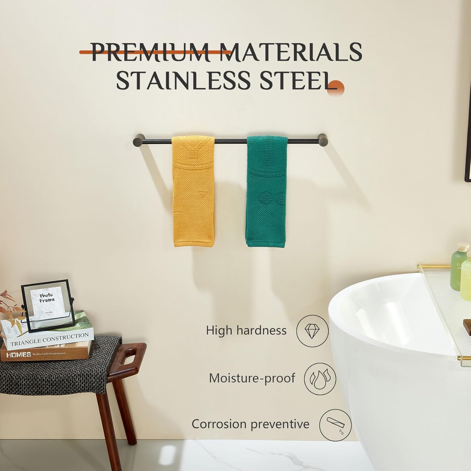 - ◄ ALL STAINLESS STEEL ► KOKOSIRI towel bar is made of T-304 Stainless Steel (premium steel). All stainless steel constructure which can resist rust and corrosion. For your health, all the materials we use are the highest quality and harmless. You can rest assured to use all of our products