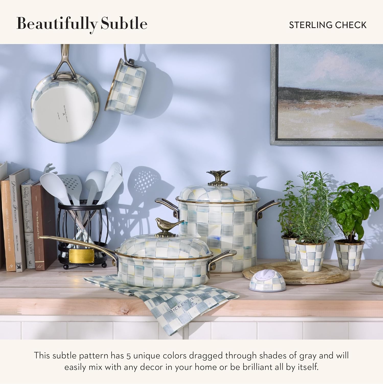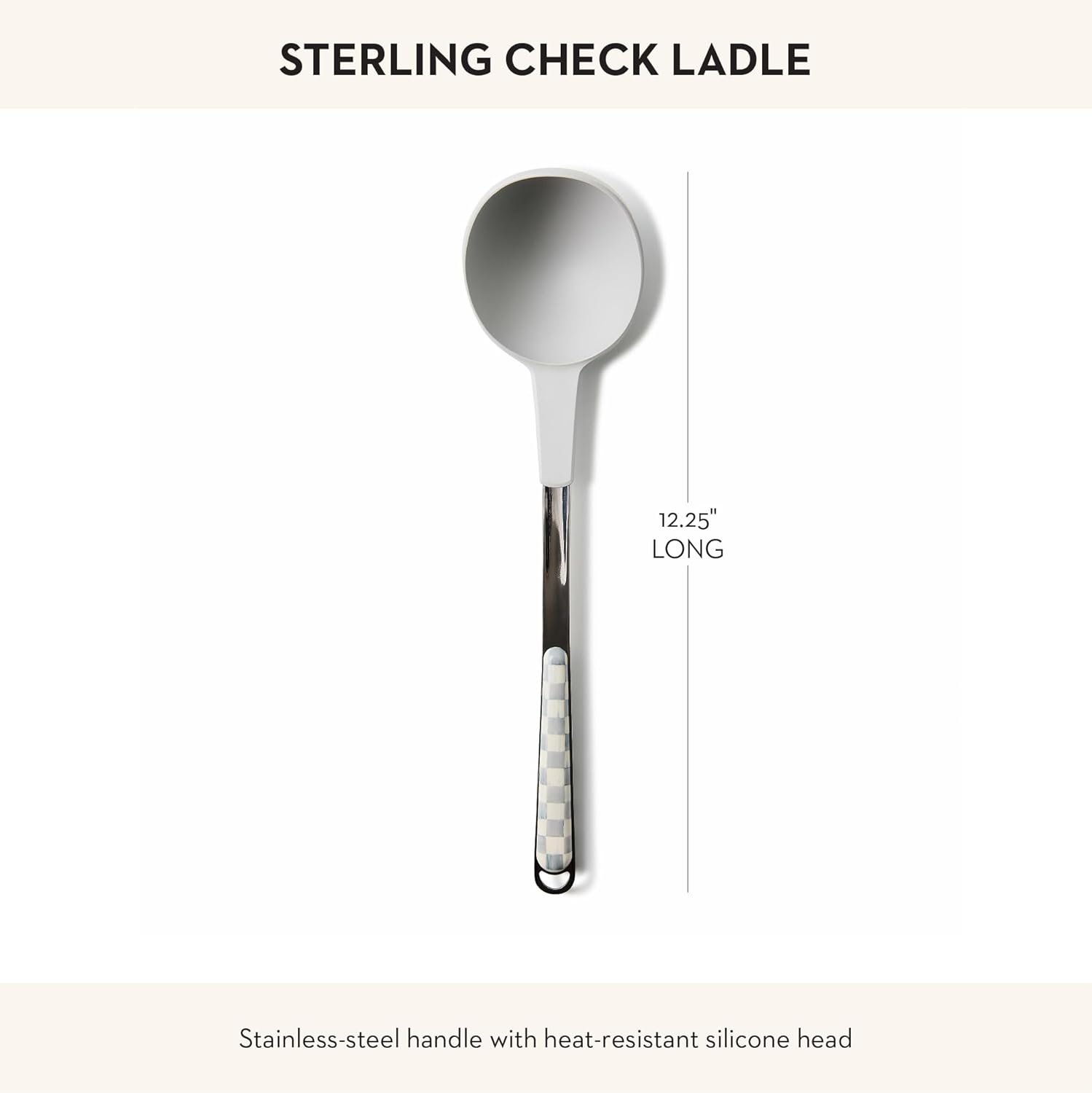 - ELEGANT SERVING ESSENTIAL: This cute serving ladle features our subtle gray-and-white Sterling Check pattern. It is crafted with a stainless-steel handle and a heat-resistant silicone top and is a chef-worthy serving tool.