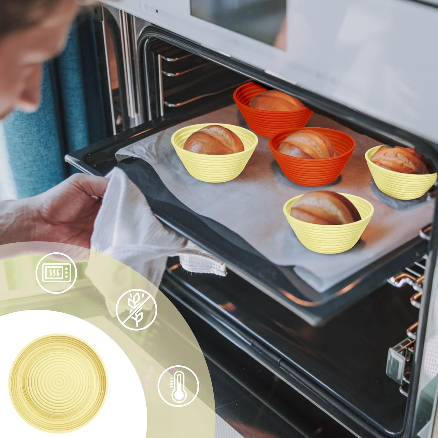 Silicone Banneton, Sourdough Bread Baskets (Set of 6, 5 Inch), Round Proofing Bread Bowls with Starter Kit, Bread Making Baking Supplies