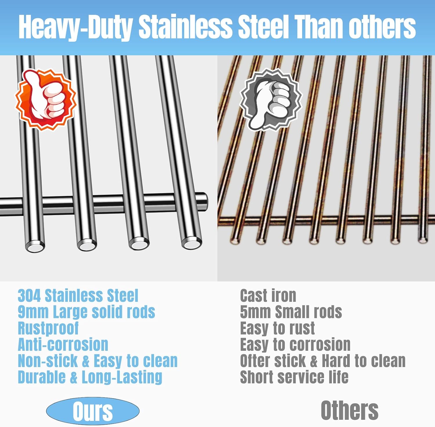 - 【Package】Including 3 pack stainless steel cooking grates,dimension: 18.75" x 11.12" for each grate, 18.75" x 33.36" for total. Comes with 3Pcs 304 Stainless Steel grill grates. Please kindly compare with the SIZE and MODEL of your original parts before you order