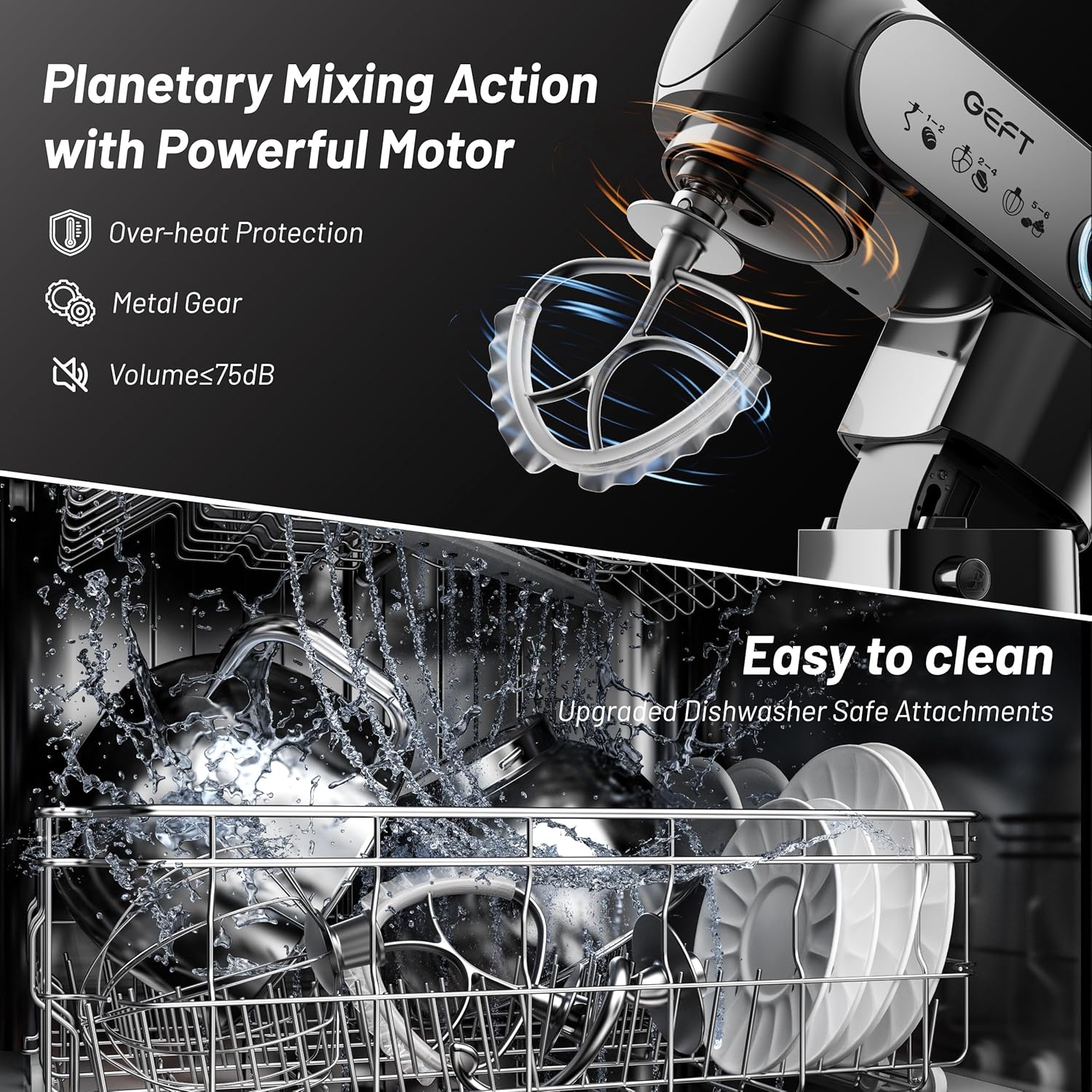 - Dishwasher-Safe Accessories: The upgraded food-grade Teflon coating ensures our dough hook, whisk, beater, and two stainless steel bowls are safe for both dishwasher cleaning and hand washing. Non-toxic and BPA-free materials prioritize your familyโs health. Note: The pouring shield is NOT dishwasher safe.