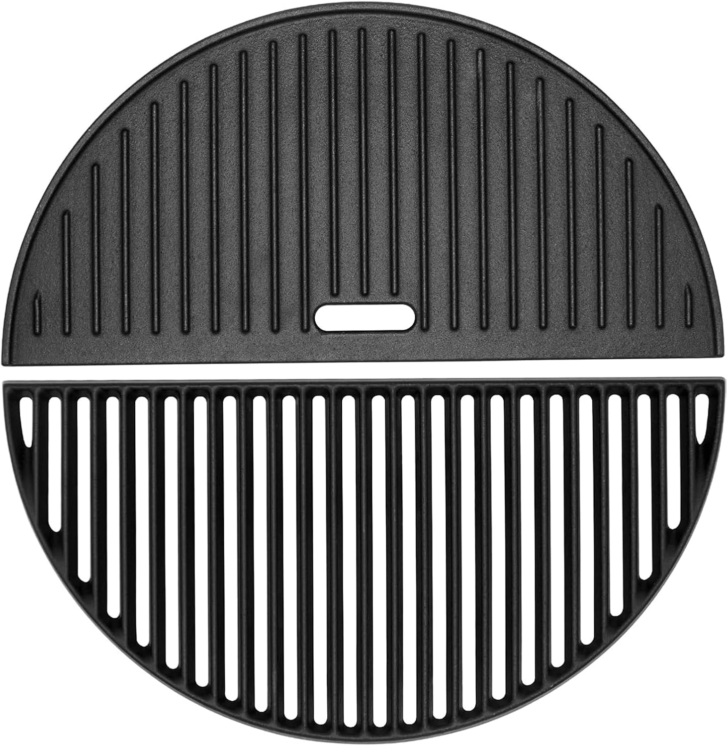 18" Half Moon Cast Iron Cooking Grates for Kamado Joe KJ-23RHC Classic II KJ23NRHCI Classic III KJ23RH Classic I Reversible Griddle for Stand-Alone Classic Large Big Green Egg Kamado Grill Replacement