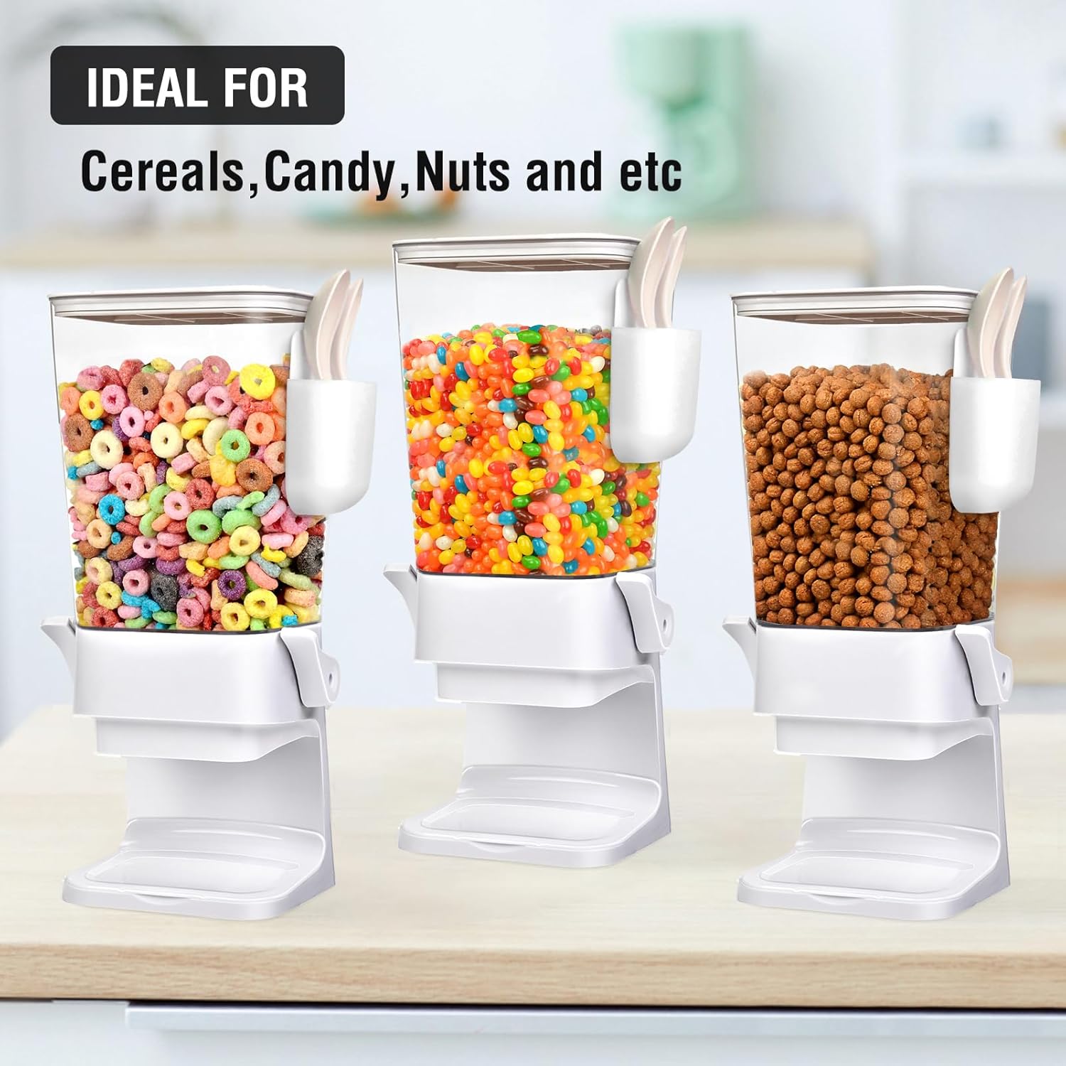 - Airtight Cereal Dispenser:Cereal dispenser countertop is made of shatter-resistant plastic and durable silicone seals.This large cereal containers storage dispenser come with good sealing performance,keep cereal,candy dry food fresh delicious and ready to eat for over a month.