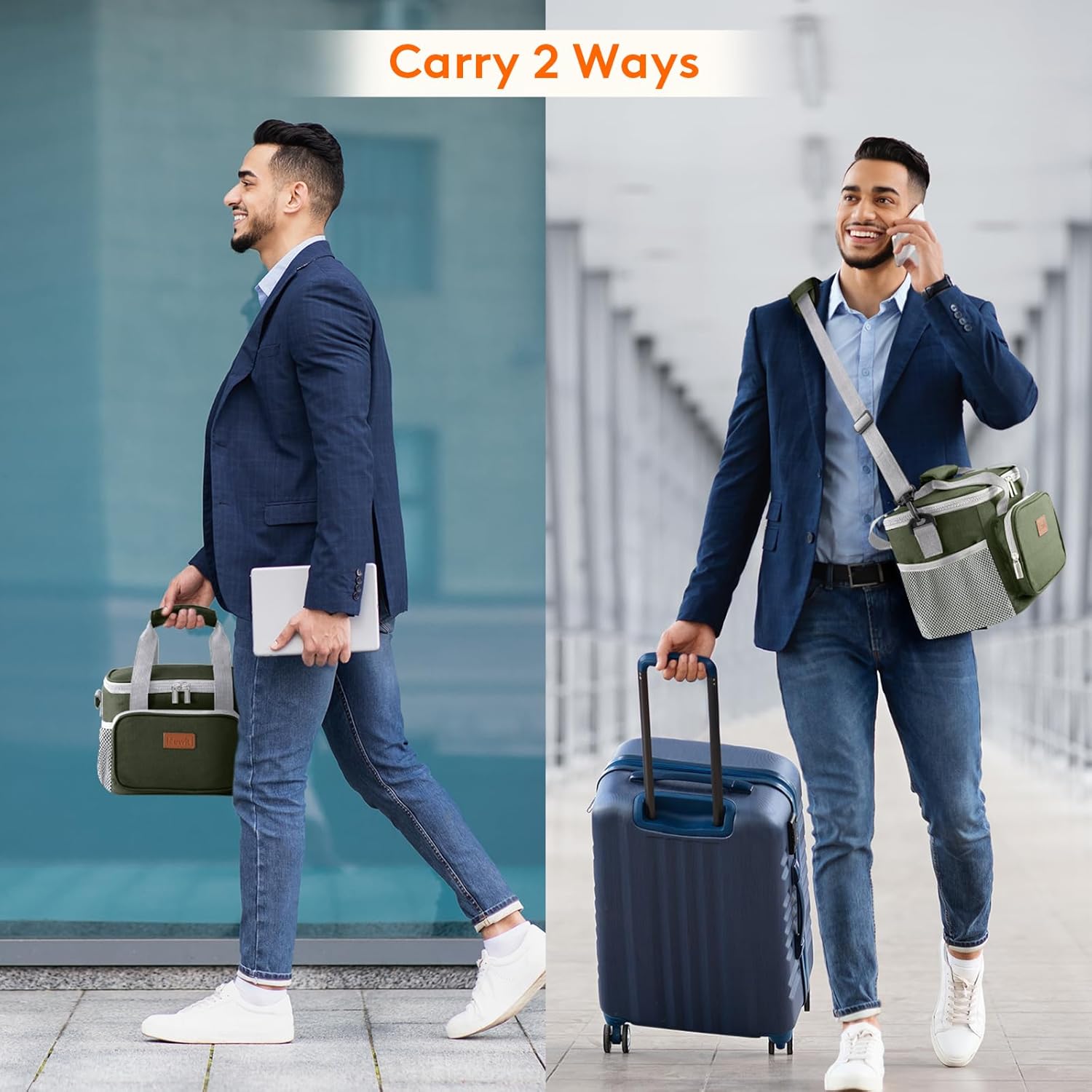 - Convenient & Portable: The lid of this cooler lunch bag can be opened up widely with strong two-way zippers, which means you can put your lunch container into the bag and take out of the bag vertically. Prevent liquids from leaking out of the container and soiling inside the bag. Tough handles and shoulder girdle allows you to carry it easily. Moreover, the front and side extra pocket can hold small items like keys and earbuds.