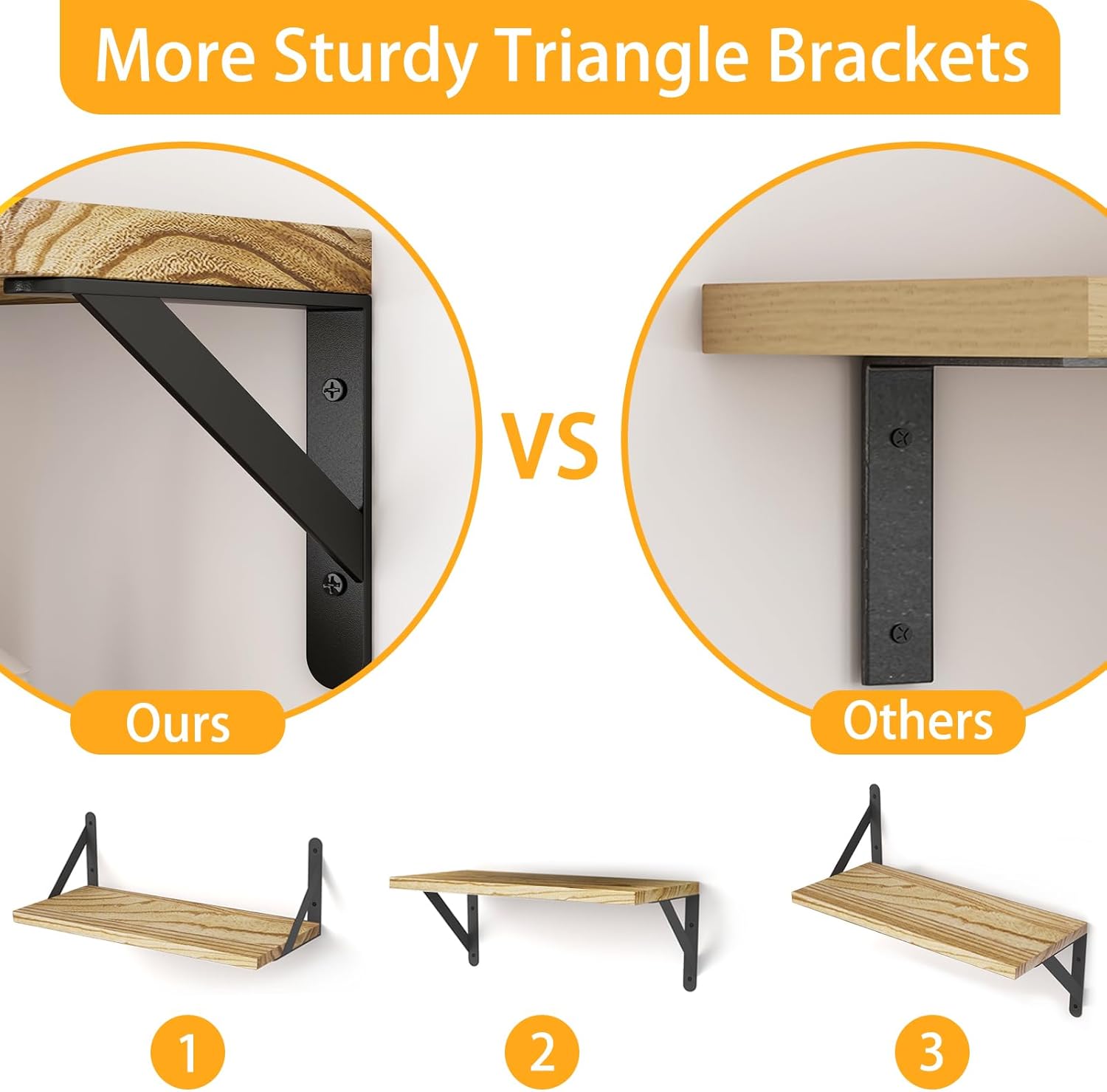 - 【Sturdy & Easy to Assemble】The Triangle shaped metal brackets are more sturdy, with a capacity of 40Lb. YGEOMER wood floating wall shelves for bathroom are super sturdy, very easy to install, all hardware and user manual was included.