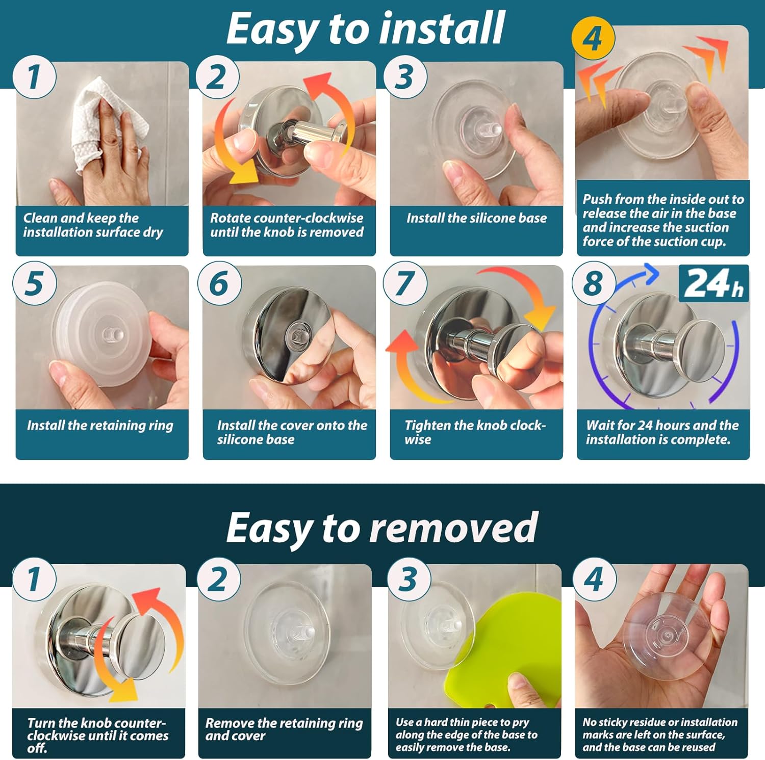 - 【No Screws Required & Reusable】 The stylish shower suction cup hook is made of waterproof and rust-proof 304 stainless steel material, and the excellent vacuum suction technology allows you to easily install and remove without tools or screws. Pry it out with a knife, clean the bottom of the command hooks and dry it for reuse.