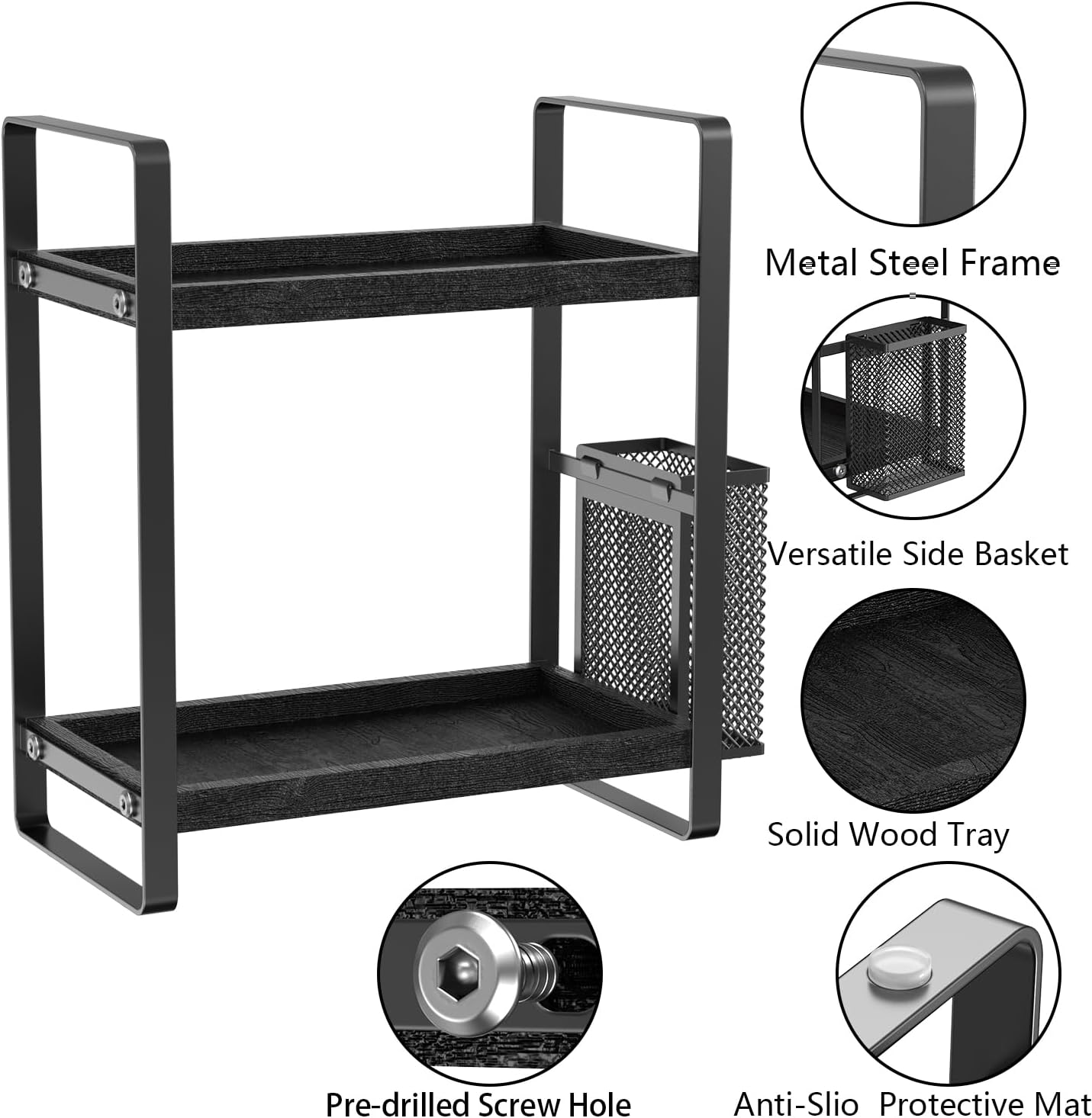 - 【Powerful and Robust Material】The kitchen countertop organizer is made of high-quality particleboard that are durable and emit no strange odors. The particleboard shelves are waterproof and smooth to the touch, while the metal brackets are sturdy and rust-resistant, ensuring a long-lasting service life.