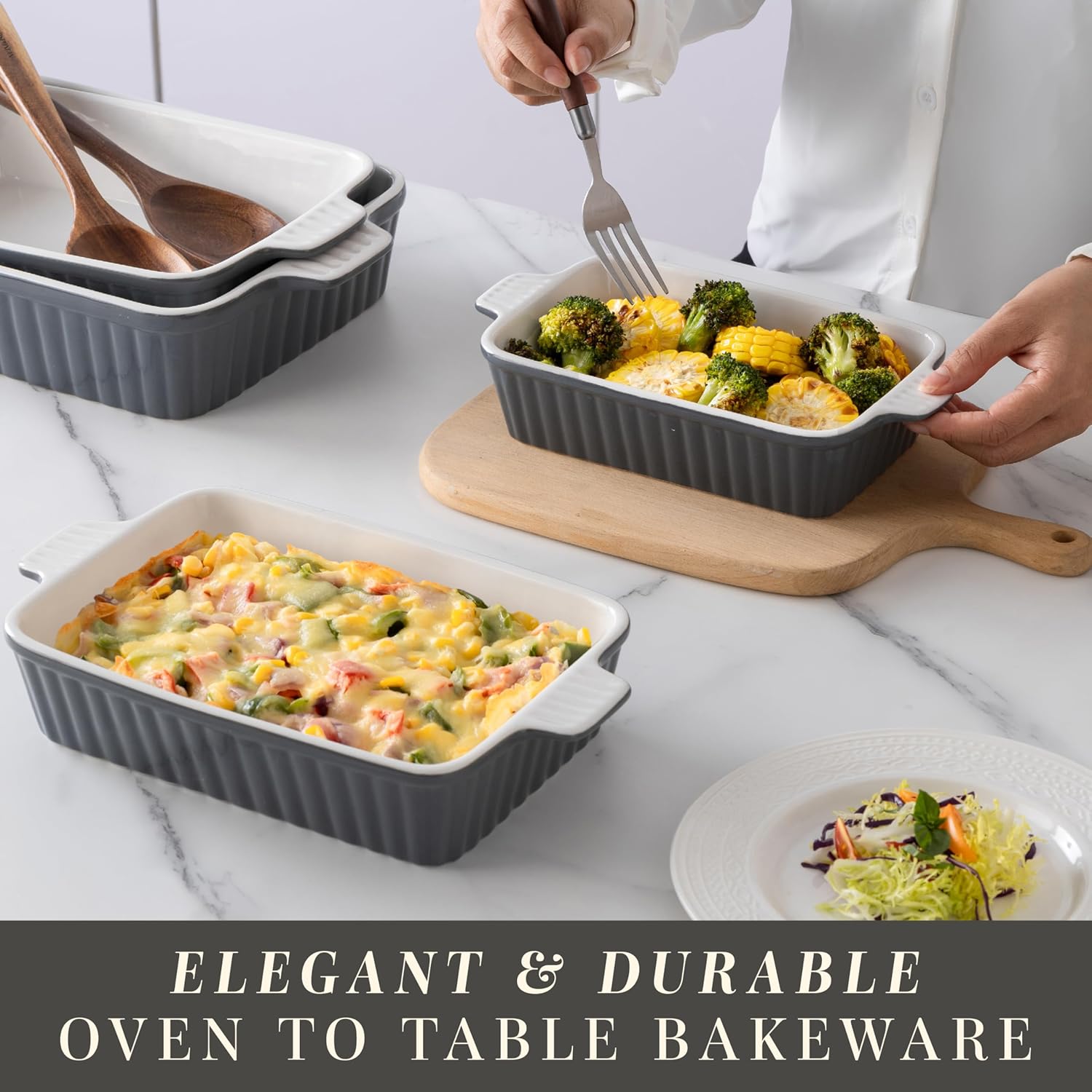 - Versatile 4-Piece Ceramic Casserole Dish Set β Includes 4 baking dishes in assorted sizes, perfect for casseroles, lasagna, roasted veggies, baked pasta, and desserts. Ideal for family dinners, potlucks, and everyday baking.