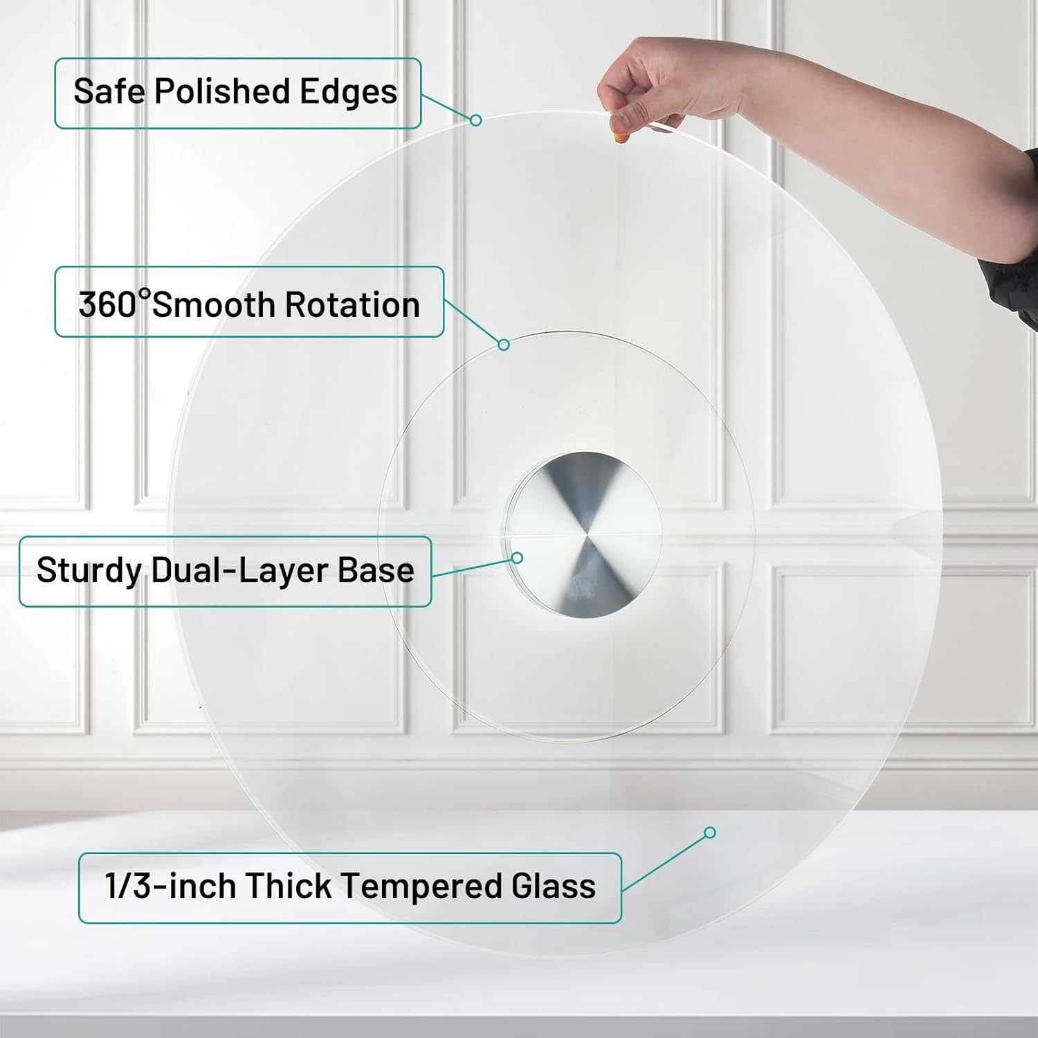 36-Inch Lazy Susan Turntable for Dining Table, Tempered Glass, 360° Rotation, Anti-Tip Design with 6 Rotating Wheels, Perfect for Parties, Weddings, and Family Dinners (36 inch)