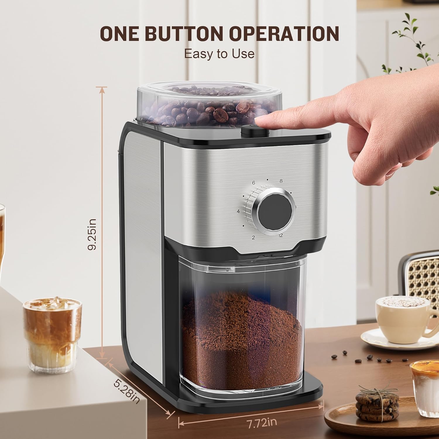 Burr Coffee Grinder, Adjustable Coffee Bean Grinder Electric with 14 Grinding Settings,2-12 Cups for Espresso, Drip Coffee and French Press