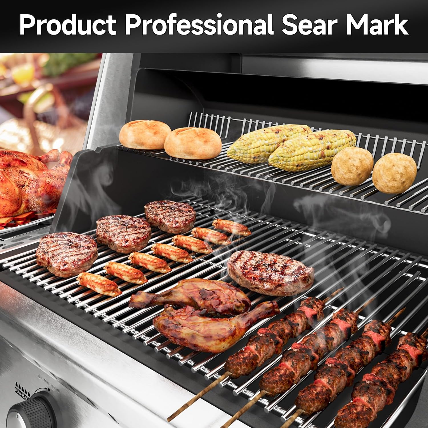 - Excellent Craftsmanship: Made of stainless steel, much longer life than porcelain grill grates, durable & rust-proof, while the smooth surface helps easy cleaning. Narrow gaps between each rod allows you to cook small food without worrying food-falling
