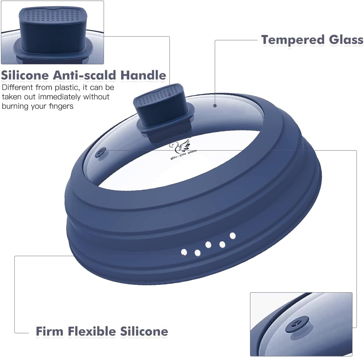 Microwave Splatter Cover Glass Guard Lid with Collapsible Silicone for Food Pot Plate Cover 9.8 inch Dark Blue