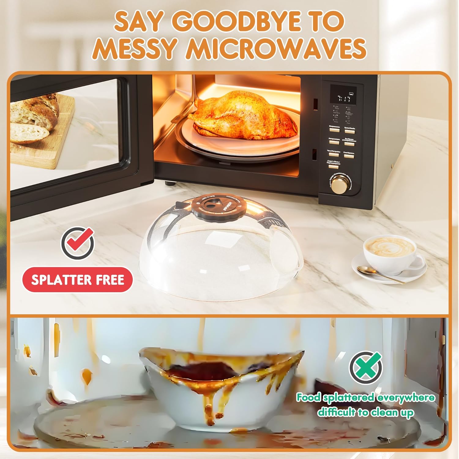 - 【Say Goodbye to Messy Microwaves】Our plastic microwave splatter cover with tray prevents food splatters, keeping your microwave spotless. Plus, it speeds up heating, saving you time and energy with every use.