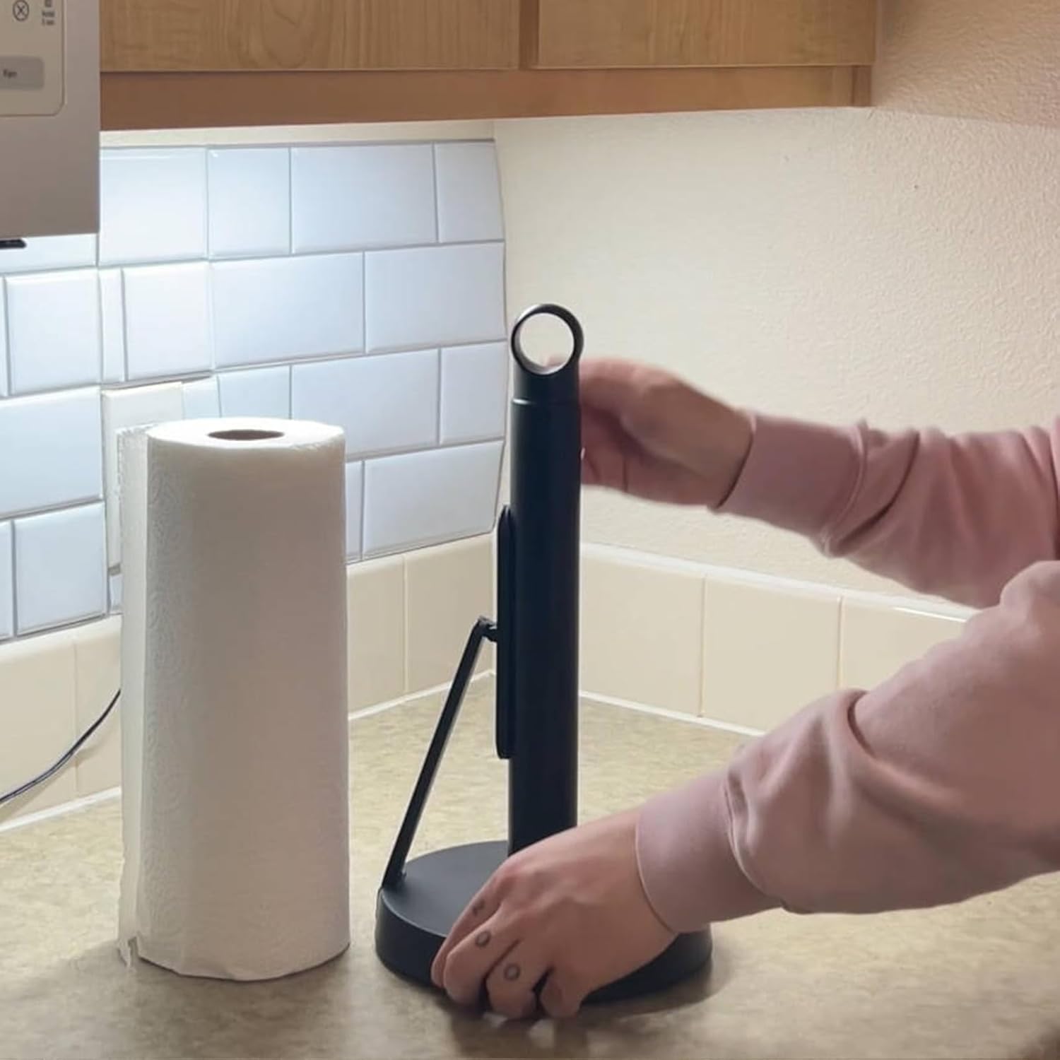 - Weighted Non-Slip Base for Stability: The heavy-duty base ensures the holder stays in place, even when you’re pulling paper towels. It won’t tip over, providing peace of mind while you’re busy cooking or cleaning.