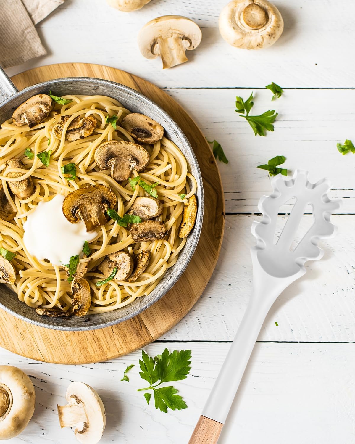 Silicone Pasta Fork, Kitchen Heat Resistant Noodle Spoon Server, BPA Free Spaghetti Strainer,12.8 inch (WHITE)