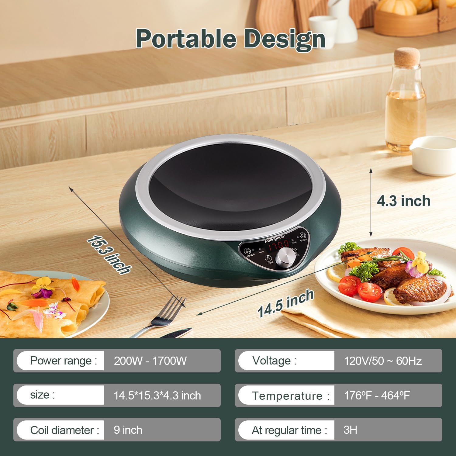 - [Wok Induction Cooker]: FCC certified, the Abangdun 110V-120V induction cooktop is suitable for all North American households and commercial applications. Its compact design makes it the perfect choice for outdoor cooking, meeting a wide range of culinary needs. The shallow concave surface design is based on the heating principle of induction hotplate, ensuring compatibility with round-bottom woks even if the curve isnât a perfect match.