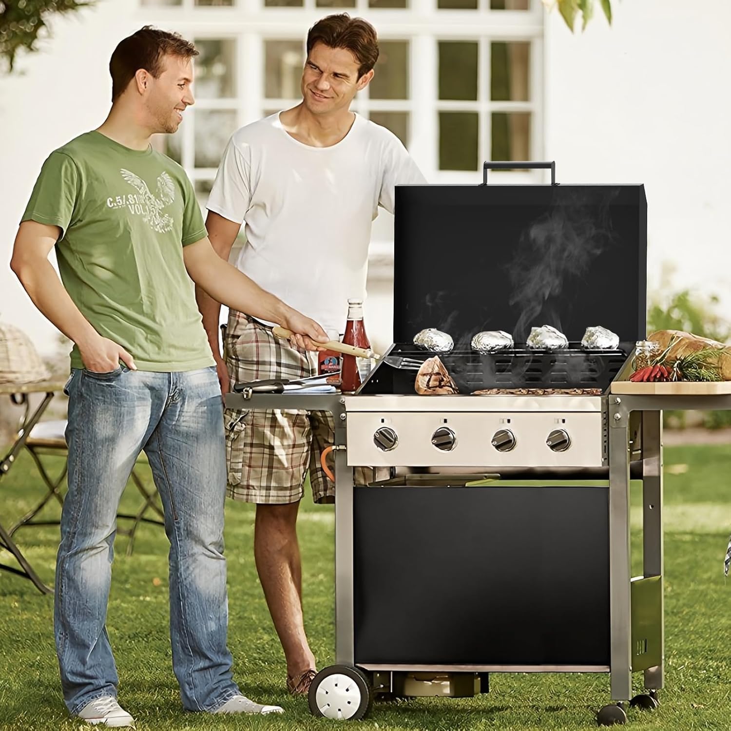 - Multi-functional griddle lid: When cooking, the griddle cover keeps out the wind as well as helping to retain heat and reduce cooking time. When not in use, the rust proof and waterproof powder coating prevents the grill from dust and the elements
