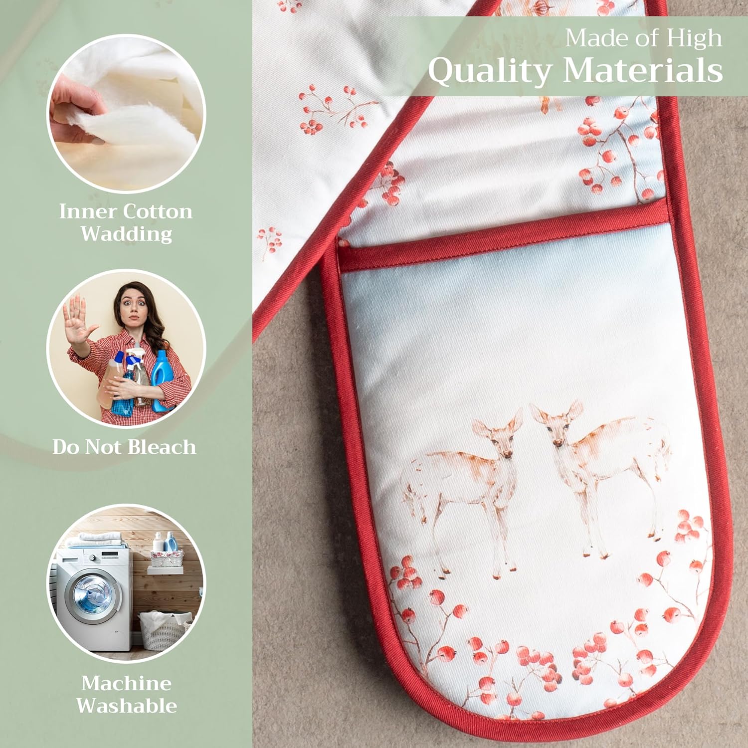 Maison d' Hermine Double Oven Mitt 100% Cotton Heat Resistant Cooking Gloves with Loop, Baking Barbeque, Handling Hot Pan, Fairytale Forest - Thanksgiving/Christmas (7 Inch x 35 Inch)