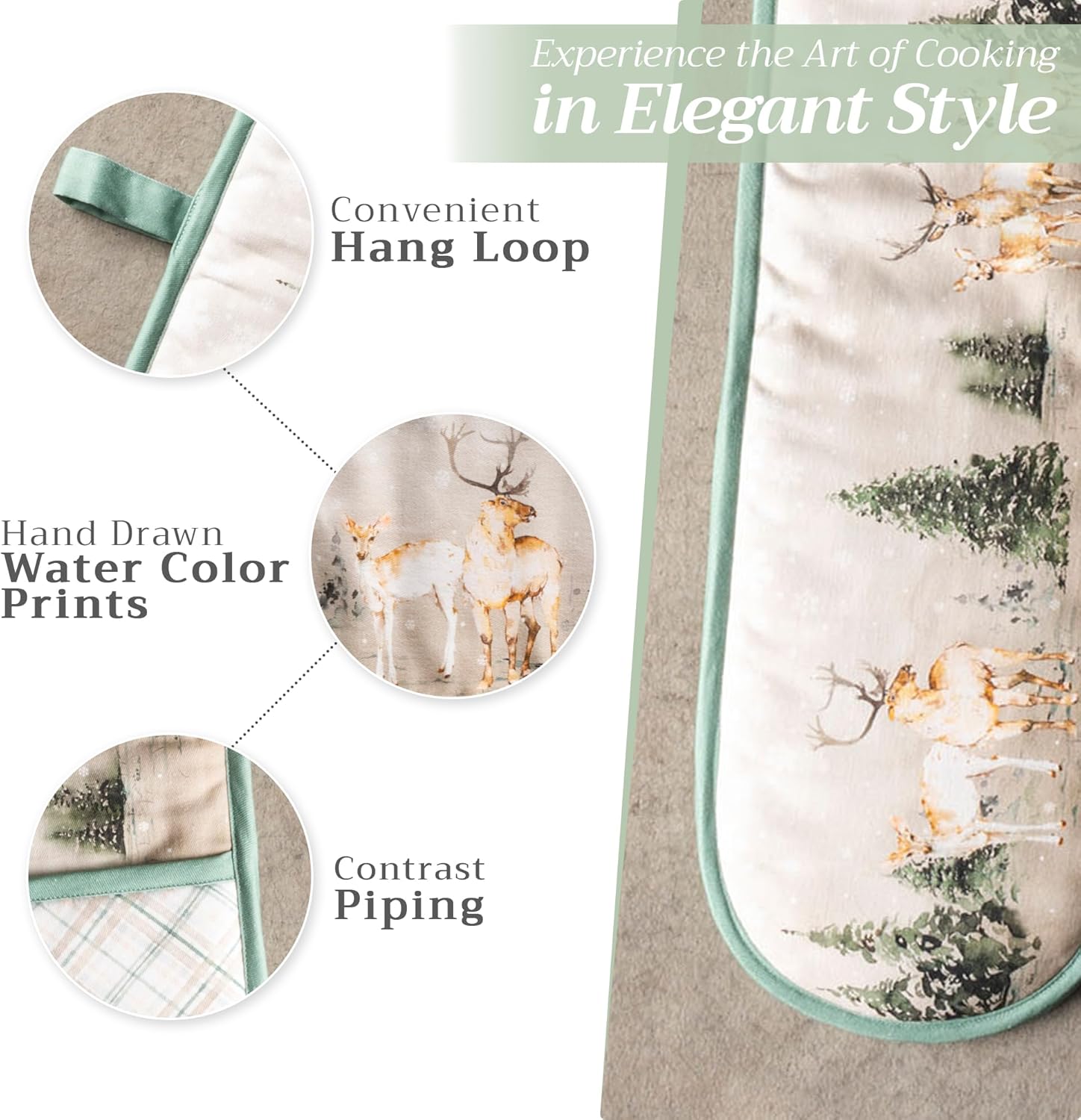 Maison d' Hermine Double Oven Mitt 100% Cotton Heat Resistant Cooking Gloves with Loop, Baking Barbeque, Handling Hot Pan, Deen in The Woods - Thanksgiving/Christmas (7 Inch x 35 Inch)