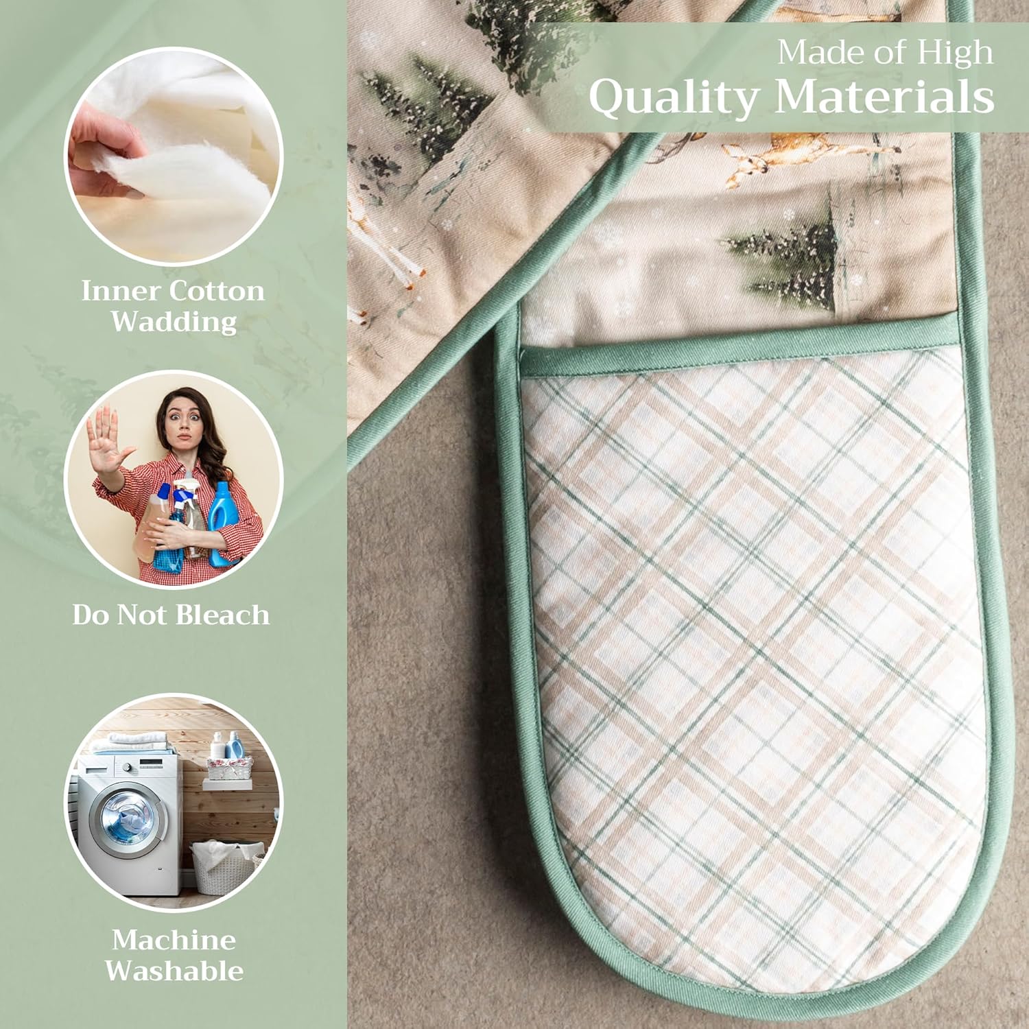 - 100% QUILTED COTTON - Unlike other double oven mitts, we only use the best quality cotton to ensure that only the finest gloves produced end up on your hands