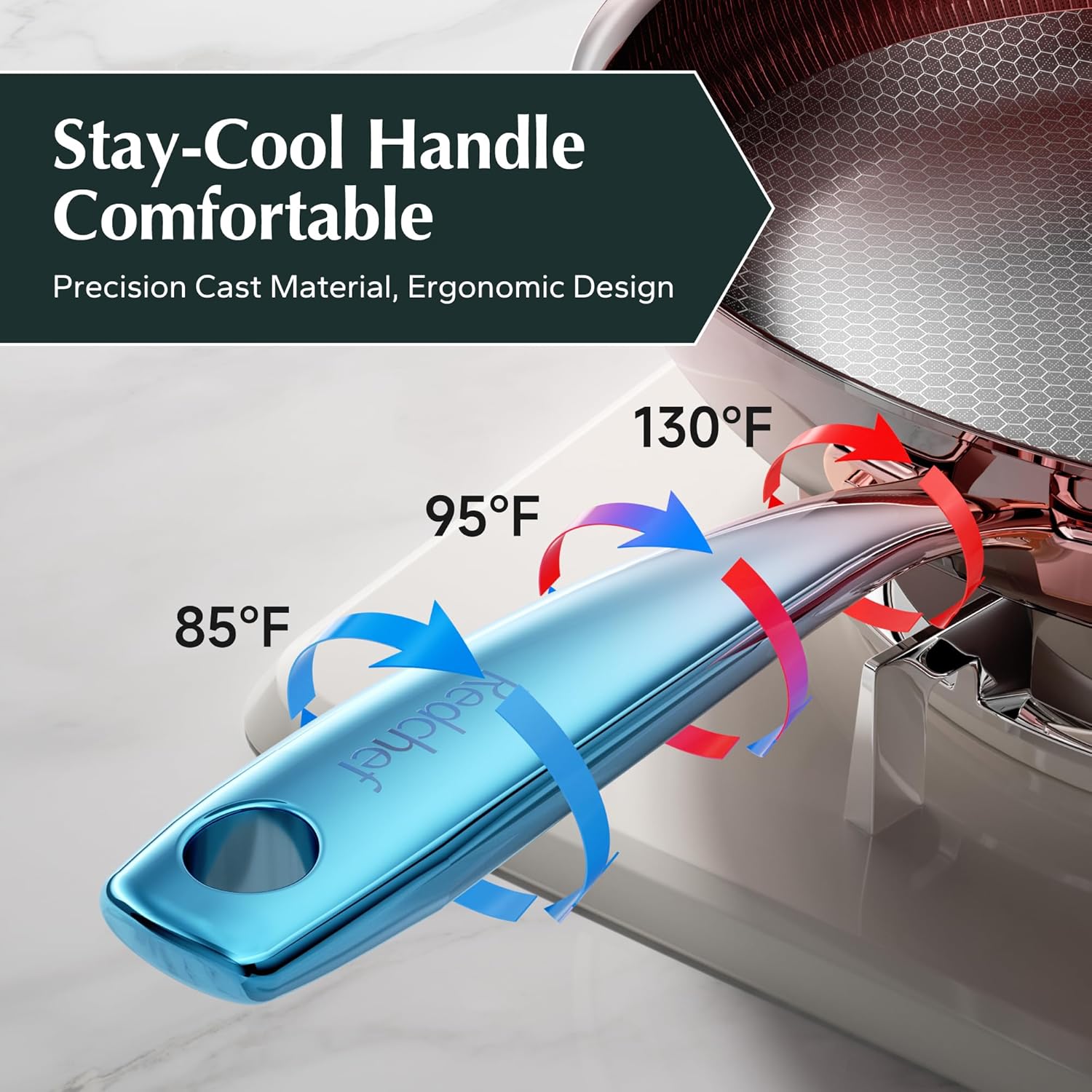 - Hybrid Honeycomb Structure: This innovative hybrid honeycomb structure offers superior non-stick properties, ensuring the ceramic coating remains intact and does not peel off, while effortlessly preserving the natural characteristics of food