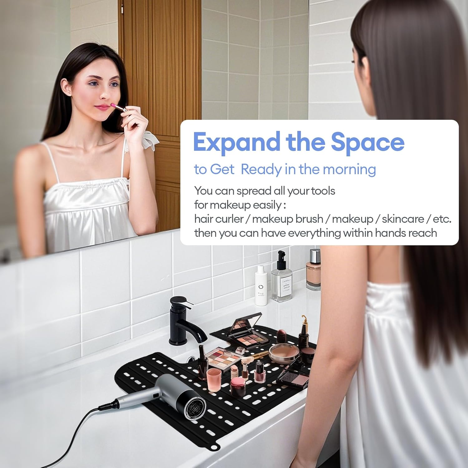 - Sturdy and durable: The sink cover for counter space is made of soft heat-resistant silicone and can withstand temperatures up to 480Β°F. There is no need to worry about hair dryers, curling irons, and other heating tools scalding the desktop; there is a steel rod running through the silicone, which is high temperature resistant and has a high load-bearing capacity. It is not easy to collapse and can bear up to 7 pounds.